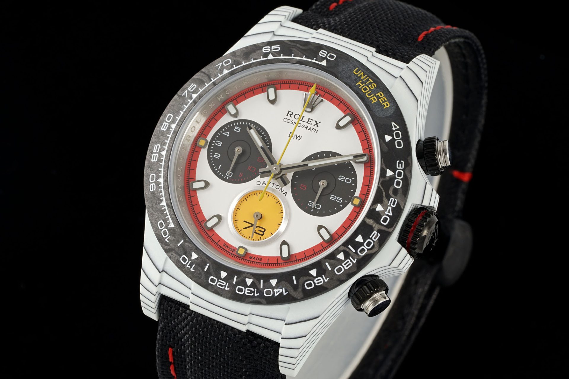In the ever-evolving landscape of luxury timepieces, DiW’s latest iteration of the Carbon Fiber Daytona represents not merely an upgrade but an evolution—ushering in an era where traditional craftsmanship meets avant-garde innovation. With a classic 40mm carbon fiber case, this re-imagined model stretches the canvas of horological artistry, offering a refined vision that speaks to both the heart and mind of the discerning enthusiast.