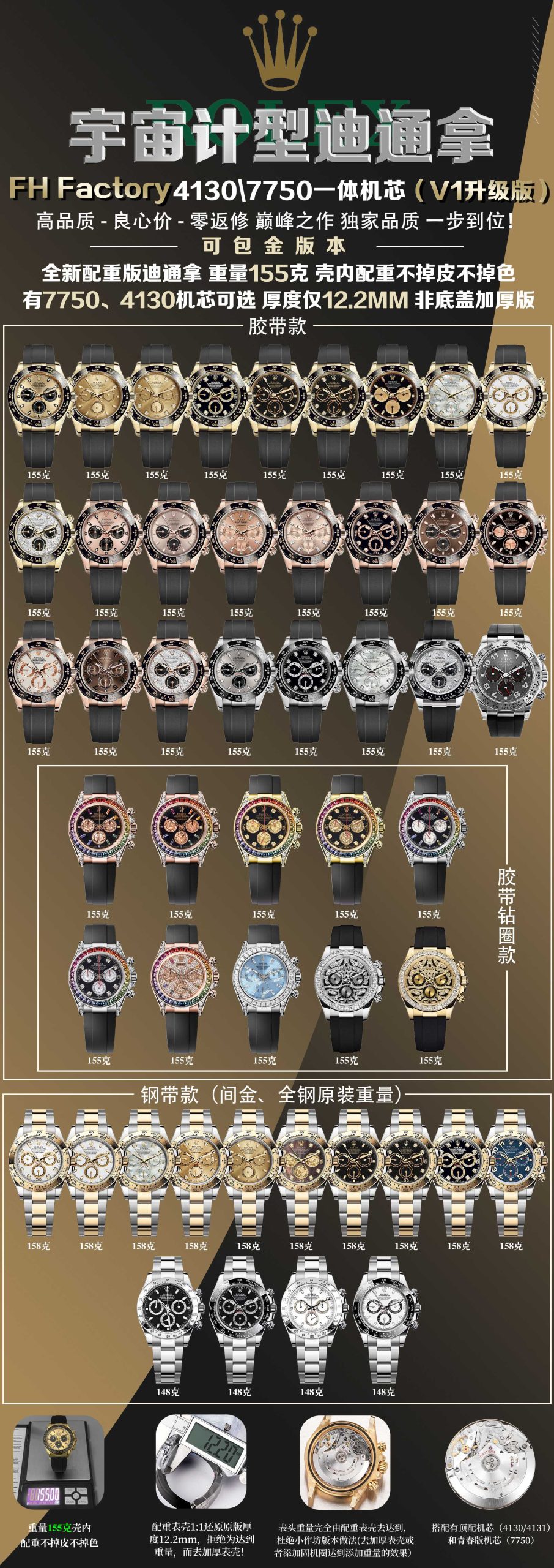 In the intricate world of horology, where precision meets artistry, the evolution of replica watches continues to challenge perceptions and redefine standards. Recently, the FH Daytona, Yacht-Master, and Sky-Dweller replicas have undergone significant upgrades, reflecting advancements not in complexity but weight—specific increases to 155 grams for the Daytona, 158 grams for the Yacht-Master, and 165 grams for the Sky-Dweller. These enhancements seem minor at first glance but highlight an important trend: the focus on tangible improvements without escalating costs. This balanced approach invites deeper analysis into the economic, ethical, and personal implications that such changes bring.