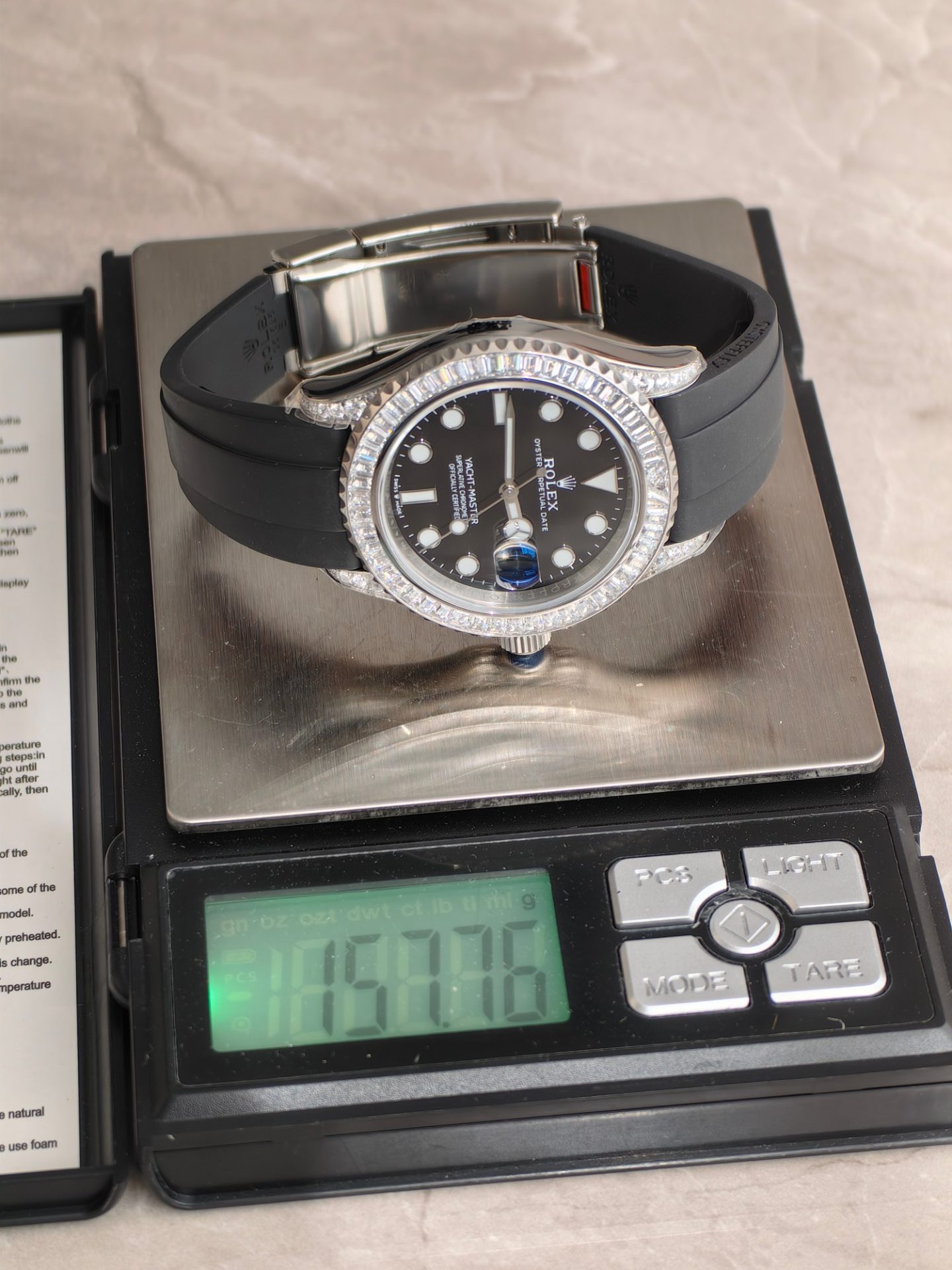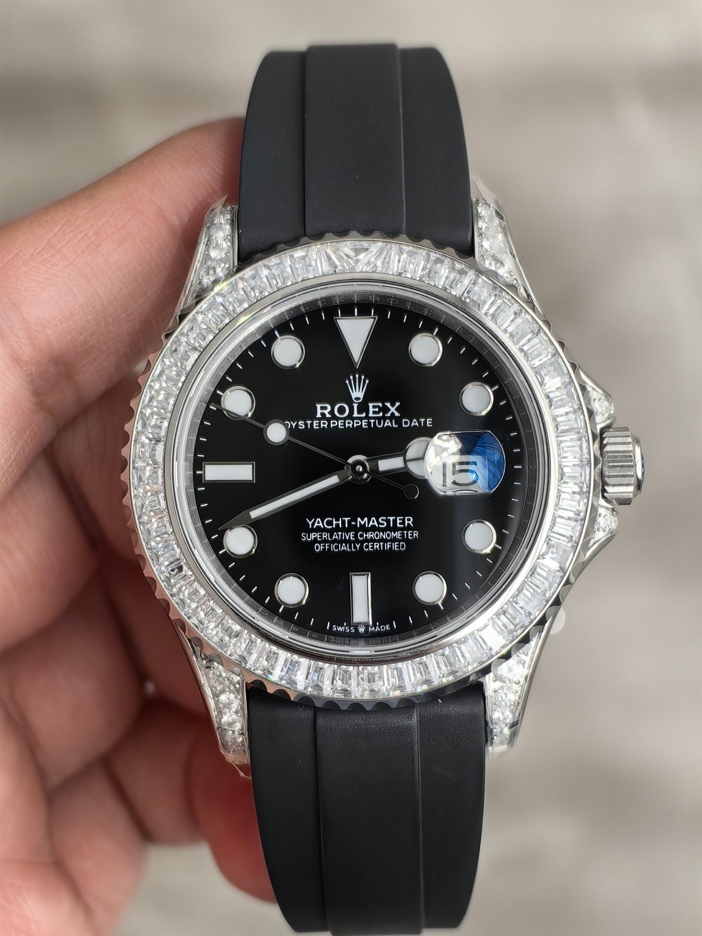 At the core of the FH Factory’s Yacht-Master is an uncompromising commitment to material authenticity and engineering precision. Crafted from 904L stainless steel, the casing incorporates weighted internal components rather than using superficial solutions like thickened casebacks or tungsten steel. This not only guarantees a weight of 158 grams that mirrors the original but also ensures resilience against peeling and discoloration—a common pitfall in many replicas. The precise dimensions—42MM in diameter and 11.8MM in thickness—mirror the authentic model, enriching the tactile experience of wearing genuine luxury.