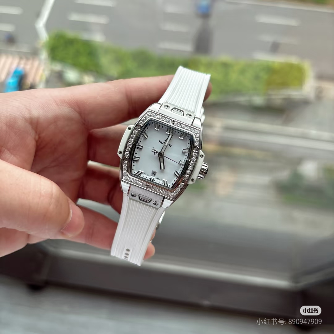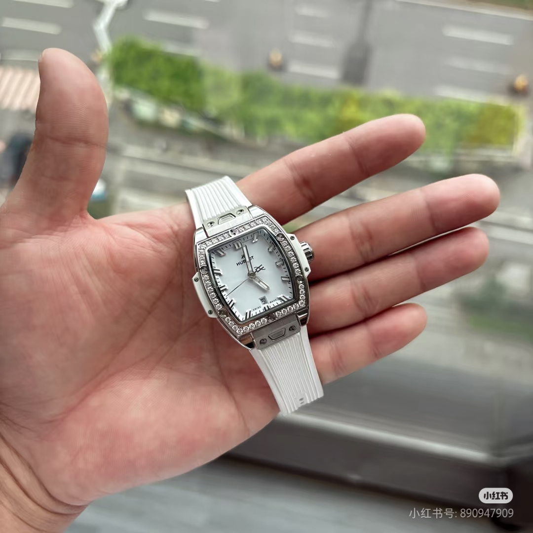 The Spirit of Big Bang White commands attention with its high fashion and finely-tuned style. Its barrel-shaped design is instantly recognizable, setting it apart in a sea of ubiquitous circular cases. This unique silhouette is more than a visual statement—it resonates deeply with horological history, echoing the form of classic tonneau watches that have captivated collectors for decades. The inclusion of diamonds elevates the watch, transforming it into a piece of wearable art that sparkles with every movement.