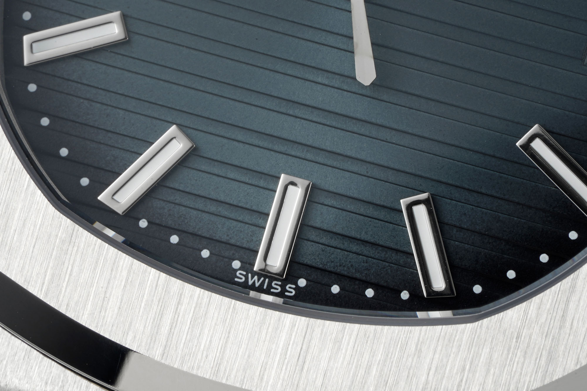 At the core of any watch’s allure lies the dial—an element that speaks to both craftsmanship and artistic expression. The DDF version claims supremacy by mirroring the 2018 gradation blue of the original Nautilus. This gradient, starting with lake-like hues at its center and evolving into a delicate spectrum under varied lighting, offers a visual feast. Moreover, the horizontal grooves beneath the dial’s horizontal strips are delicately executed without fringes, showcasing a precision that aligns with the original model. The facet of an accurate replica lies not only in replicating colors but also capturing nuanced reflections akin to its inspiration.