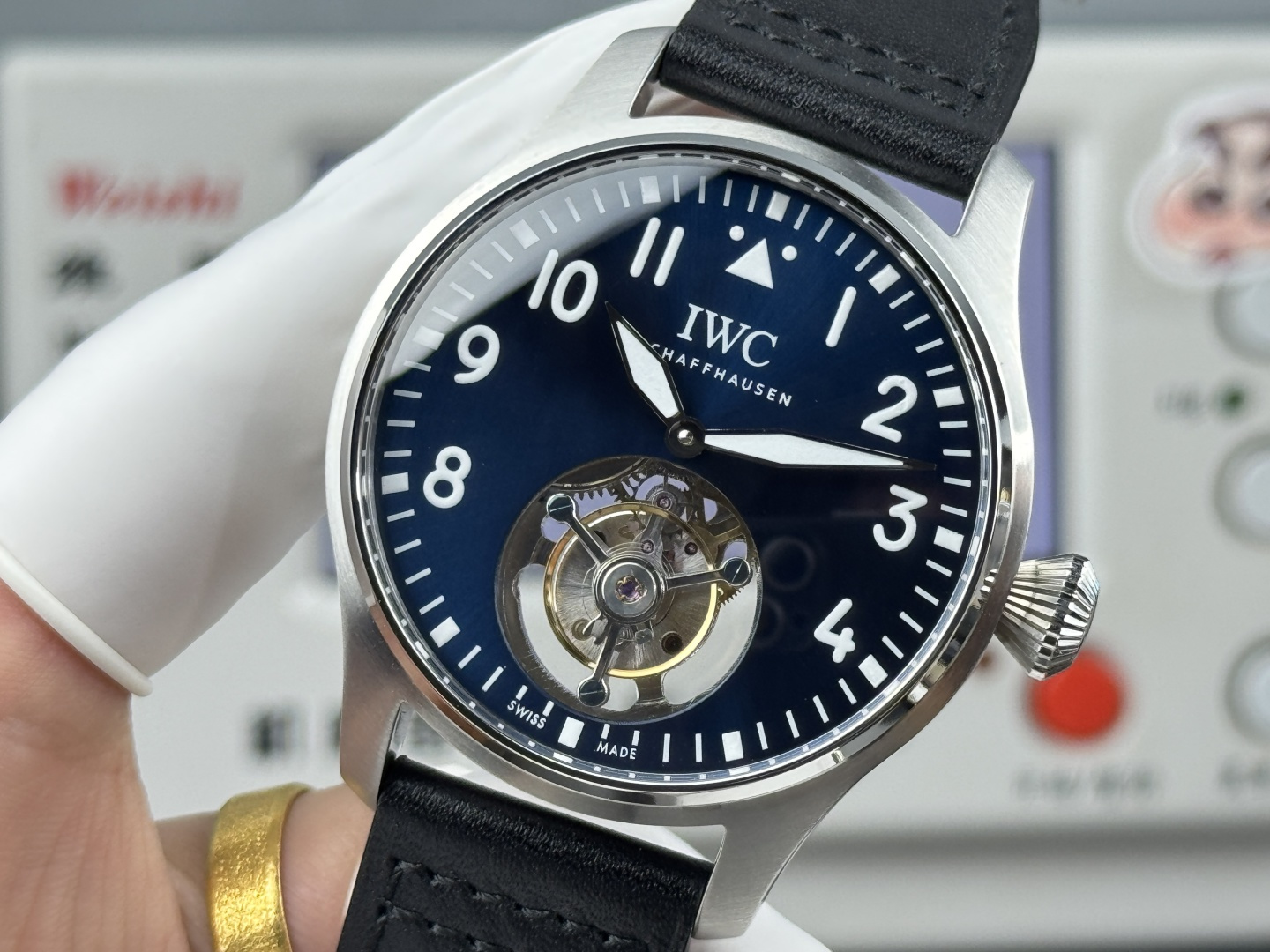 One of the most striking features of the new Pilot’s Tourbillon is its 43mm case housing a manual-wind tourbillon movement. The tourbillon, located prominently at the 6 o’clock position, performs a mesmerizing 360-degree rotation, with a frequency of 28,800 vibrations per hour. This mechanism, apart from being visually captivating, offers a power reserve of up to 48 hours, ensuring reliability and performance.