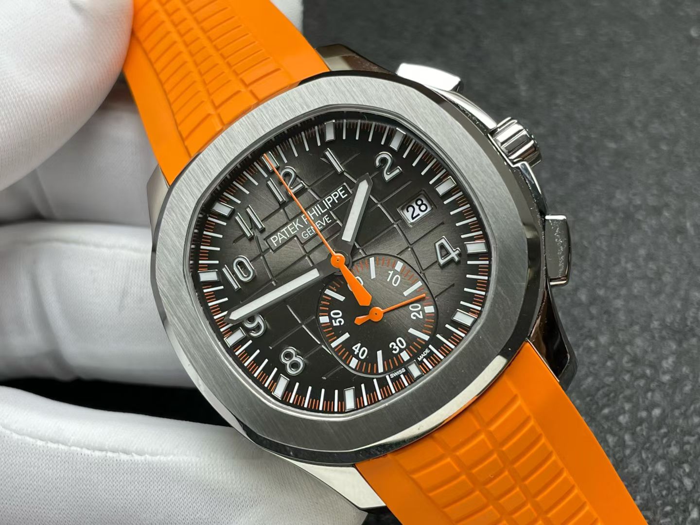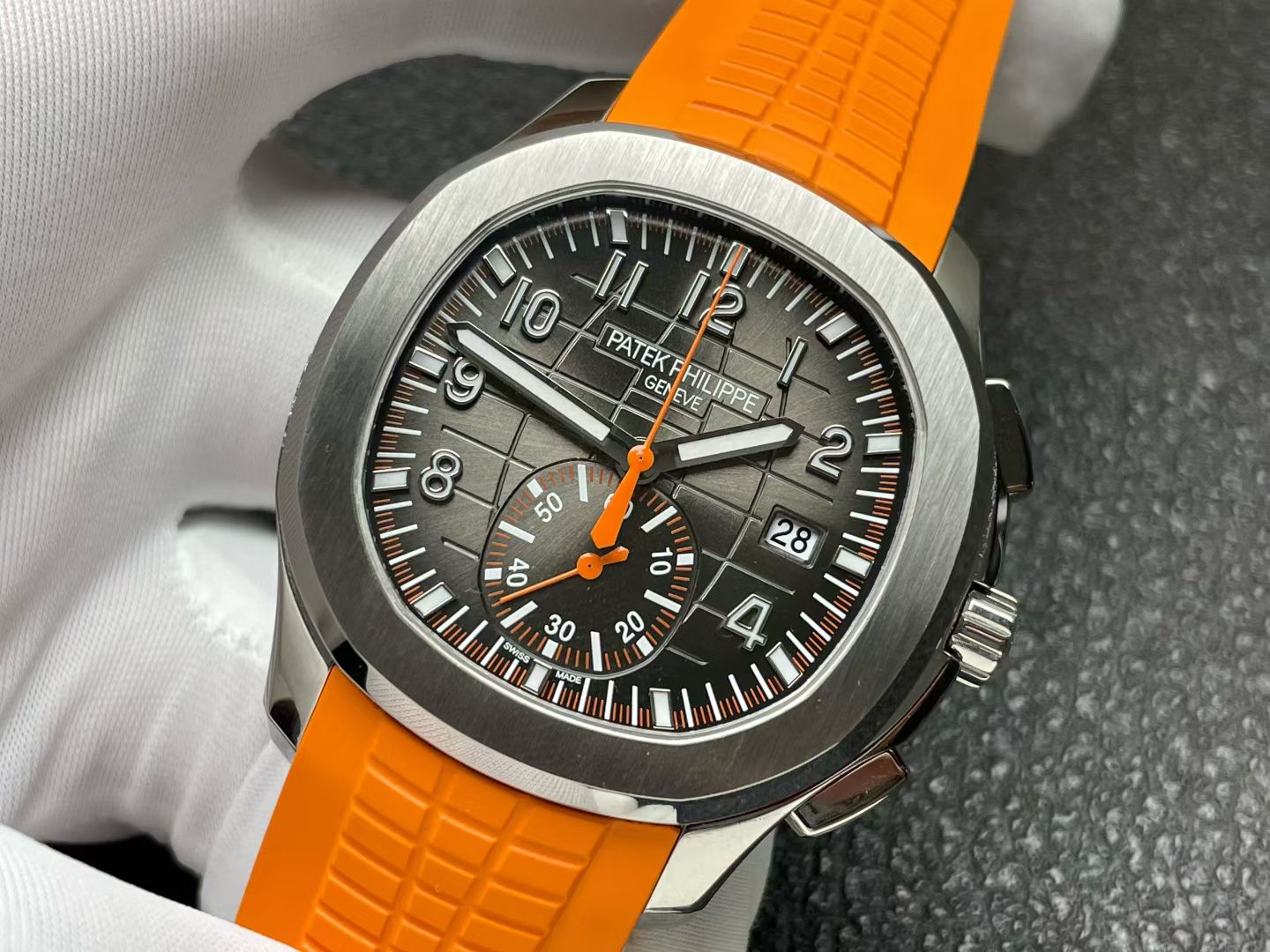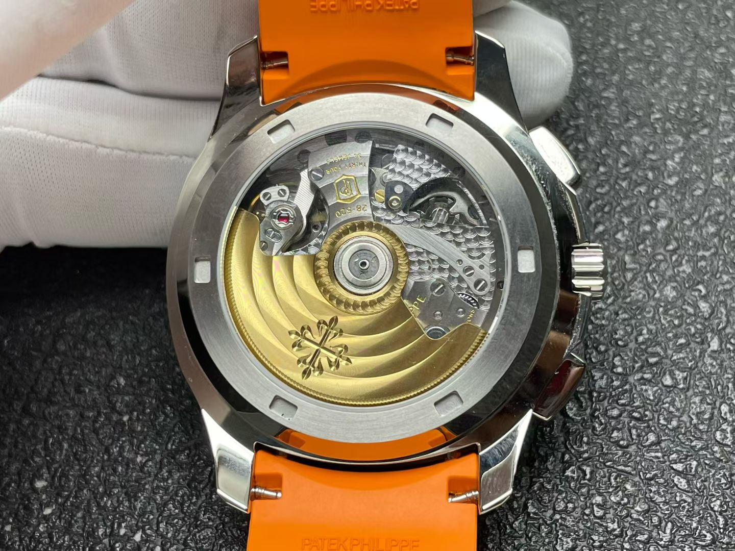 The 5968A-001 is the stainless steel variant in the lineup, popularly known for its striking orange hands. As a nod of appreciation to loyal customers, this model includes an additional orange rubber strap, enhancing its versatility and appeal. Stainless steel represents a more accessible point into the luxury watch market without the prohibitive costs of rare metals, allowing broader demographic access while maintaining prestige.
