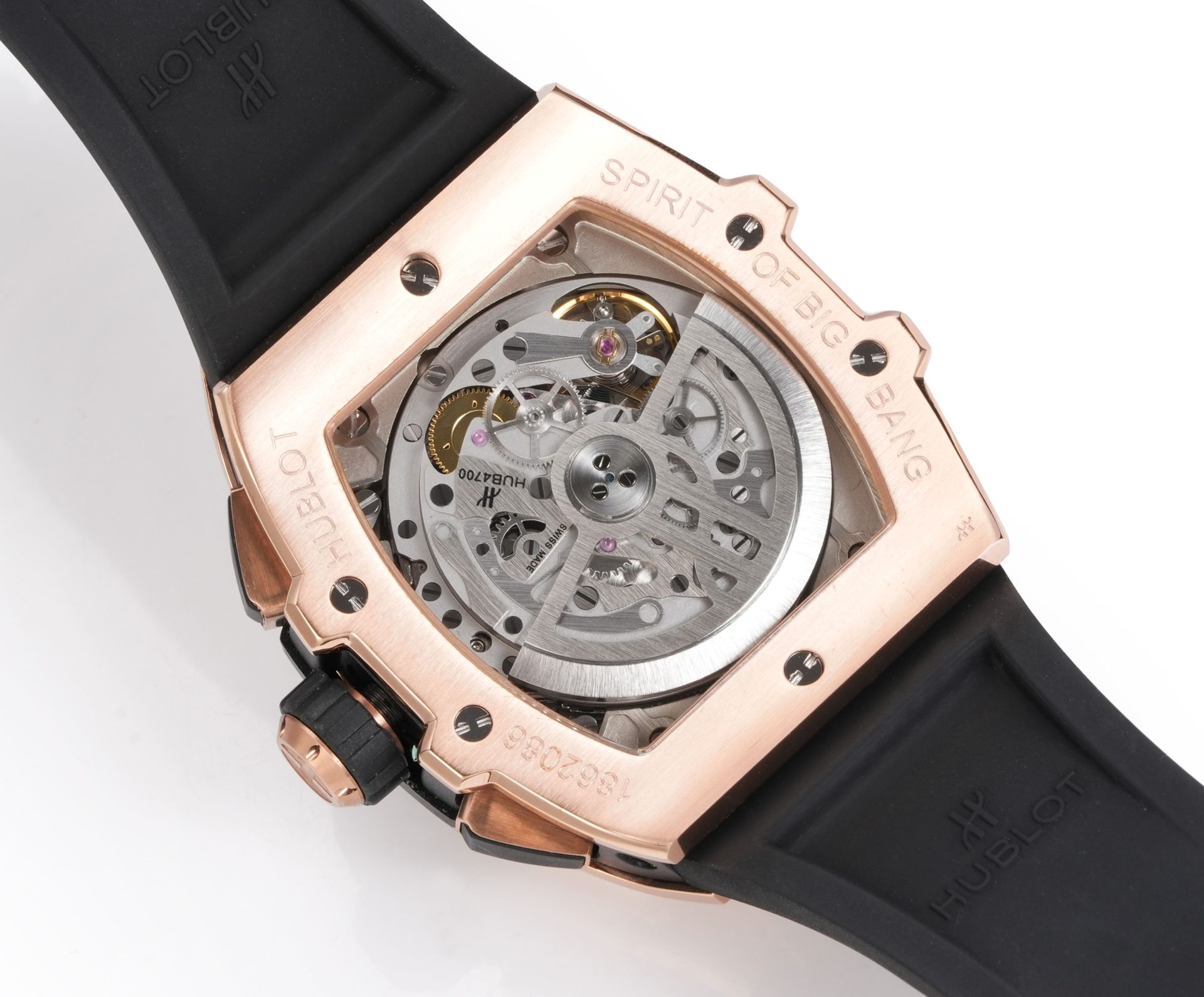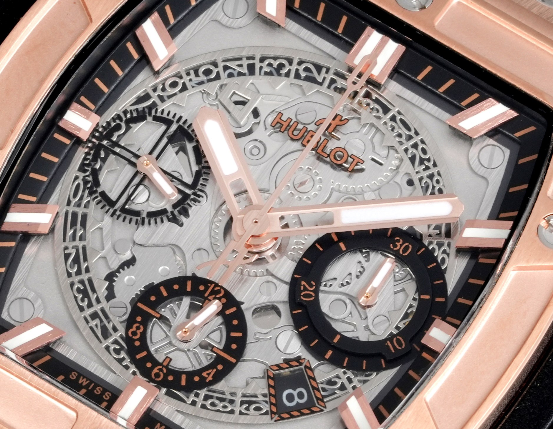 One of the defining characteristics of this watch is the ‘sandwich’ structure, innovatively assembled using six H-shaped screws. This construction not only serves a functional purpose but also symbolizes Hublot’s commitment to the ‘Art of Fusion,’ merging different materials and techniques into a harmonious whole. At the heart of this watch lies the HUB4700 movement—a near-perfect rendition of the popular El Primero caliber, signifying precision and reliability.