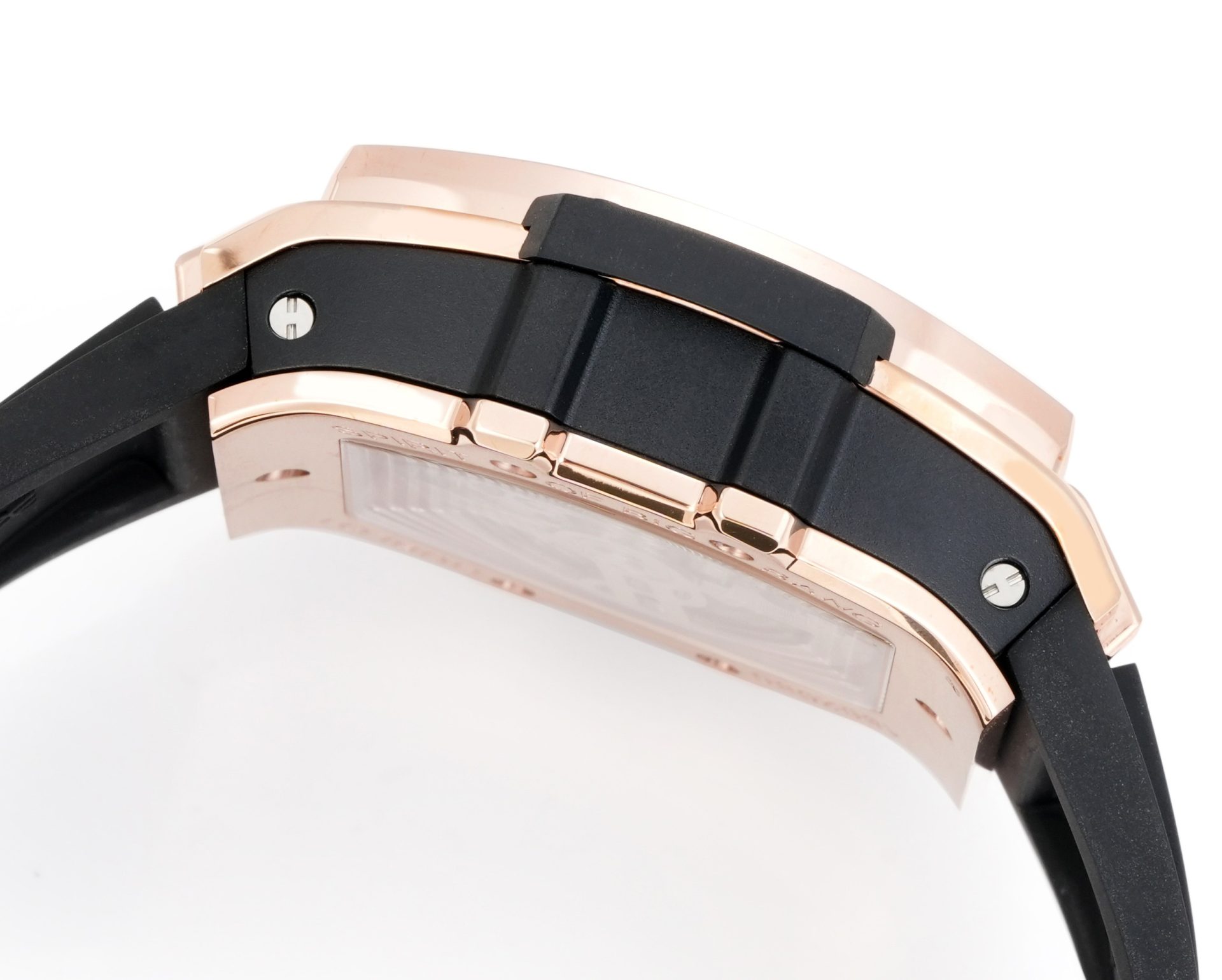 The OMF V2 embraces the quintessential elements of the Spirit of Big Bang line with its avant-garde barrel-shaped case. This design choice alone makes it stand out amidst the sea of luxury timepieces that often resort to traditional round or square casings. Constructed using a combination of titanium and resin materials, the case is a marvel of modern engineering. These materials offer a robust yet lightweight experience, ensuring durability without compromising comfort.
