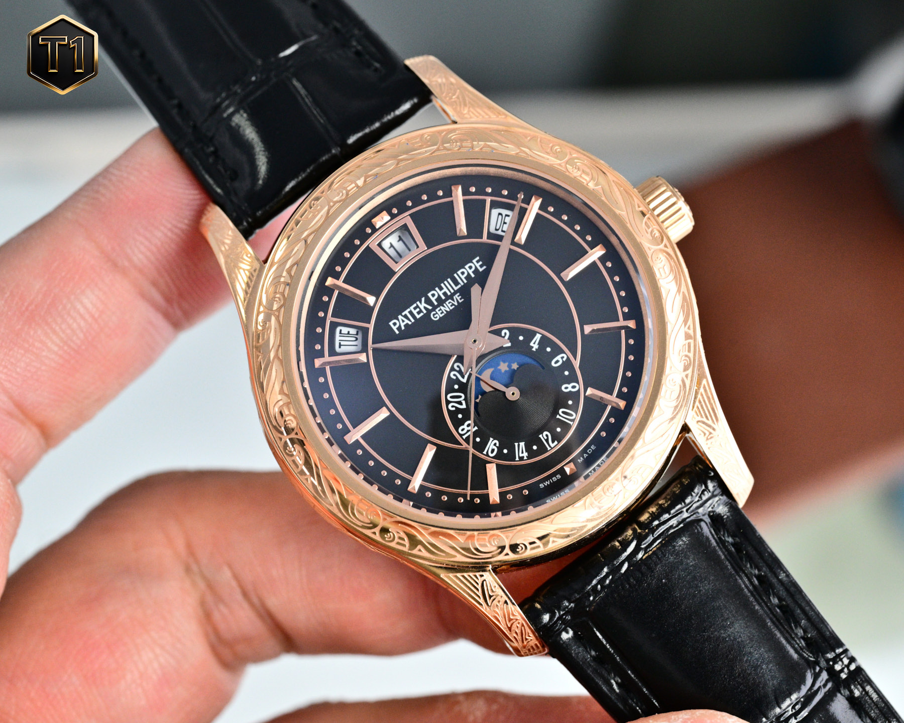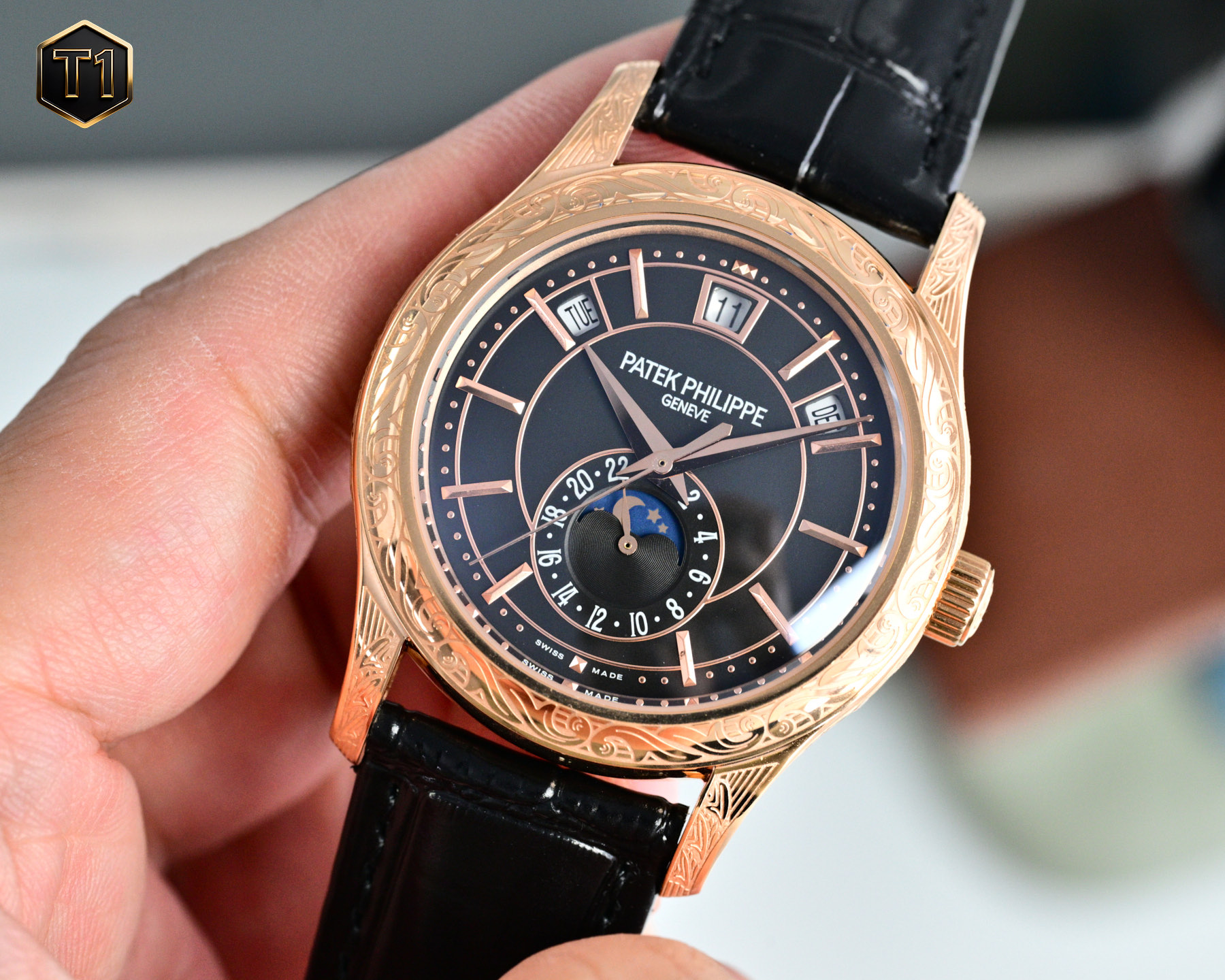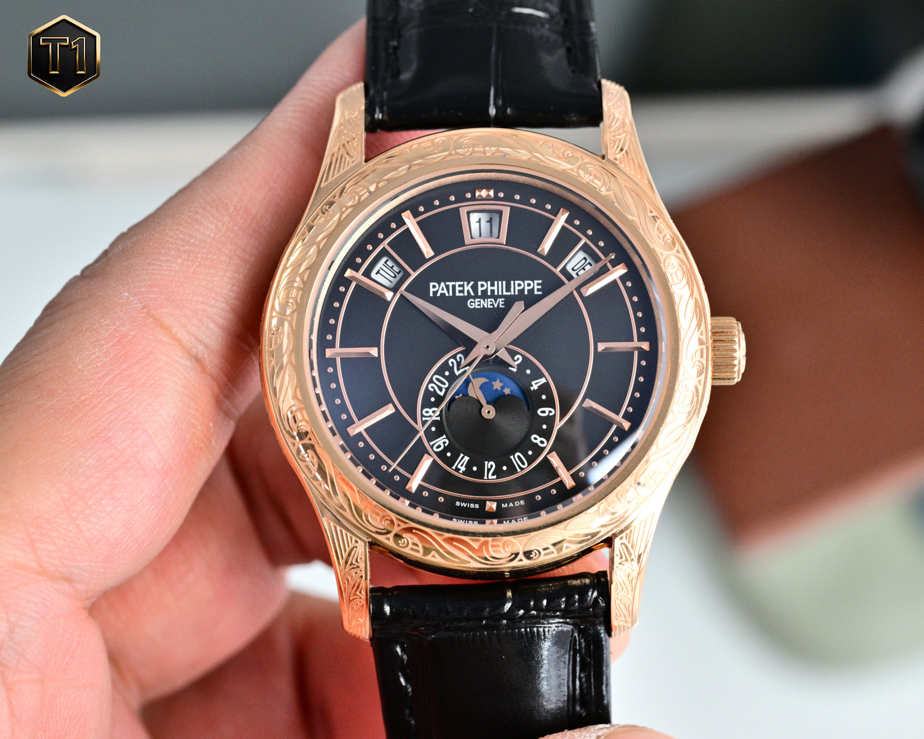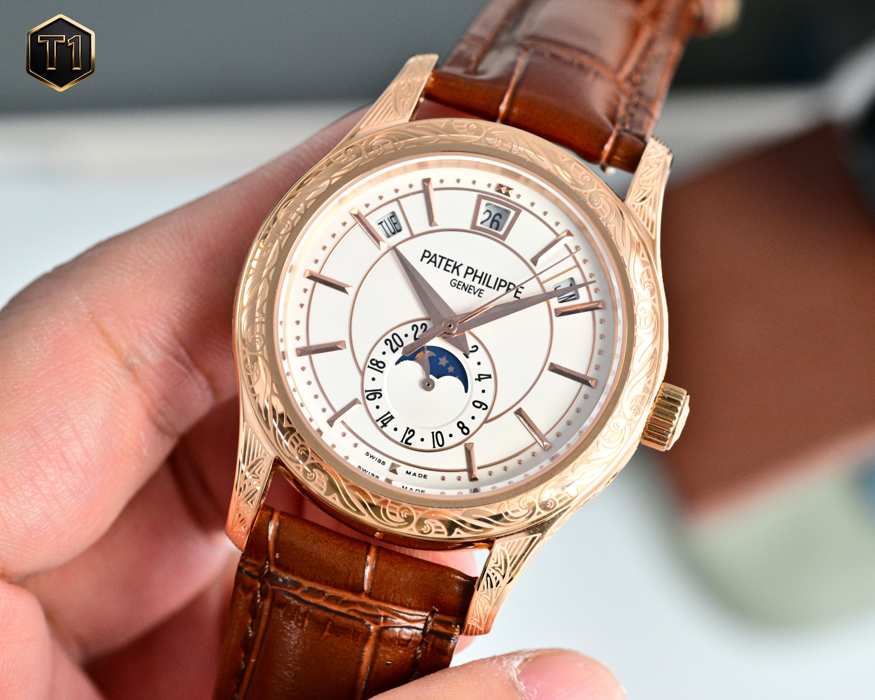 The Patek Philippe 5205G-013, a masterpiece of refined elegance and technical complexity, makes its debut as the first intricately carved Nautilus in the brand’s Complications series. Known for pushing the boundaries of horology, Patek Philippe has ingeniously combined the art of haute horlogerie with the allure of a sporty aesthetic. This timepiece is more than just a luxury watch; it is a testament to innovation and craftsmanship.