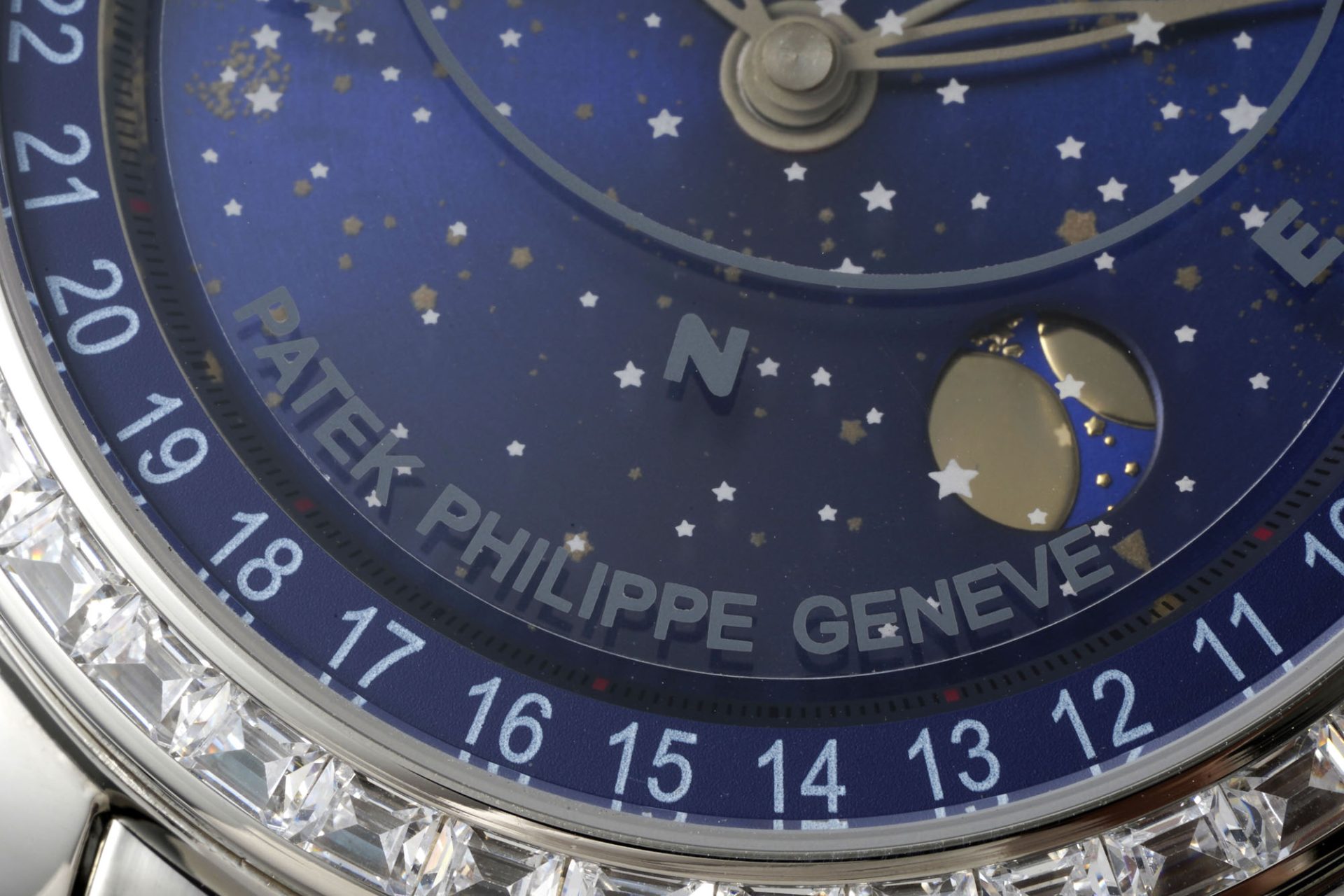 The allure of the Patek Philippe Grand Complications 6102-6104 lies in its ability to encapsulate the intricate ballet of heavenly bodies. This is not merely a timepiece; it’s a celestial marvel that brings the night sky to life. The watch features a mobile sky chart that accurately reproduces the visible motion of the stars and the moon’s phases. Its unique capability to outline the sky visible over Geneva and cities on the same latitude offers a personalized stargazing experience.