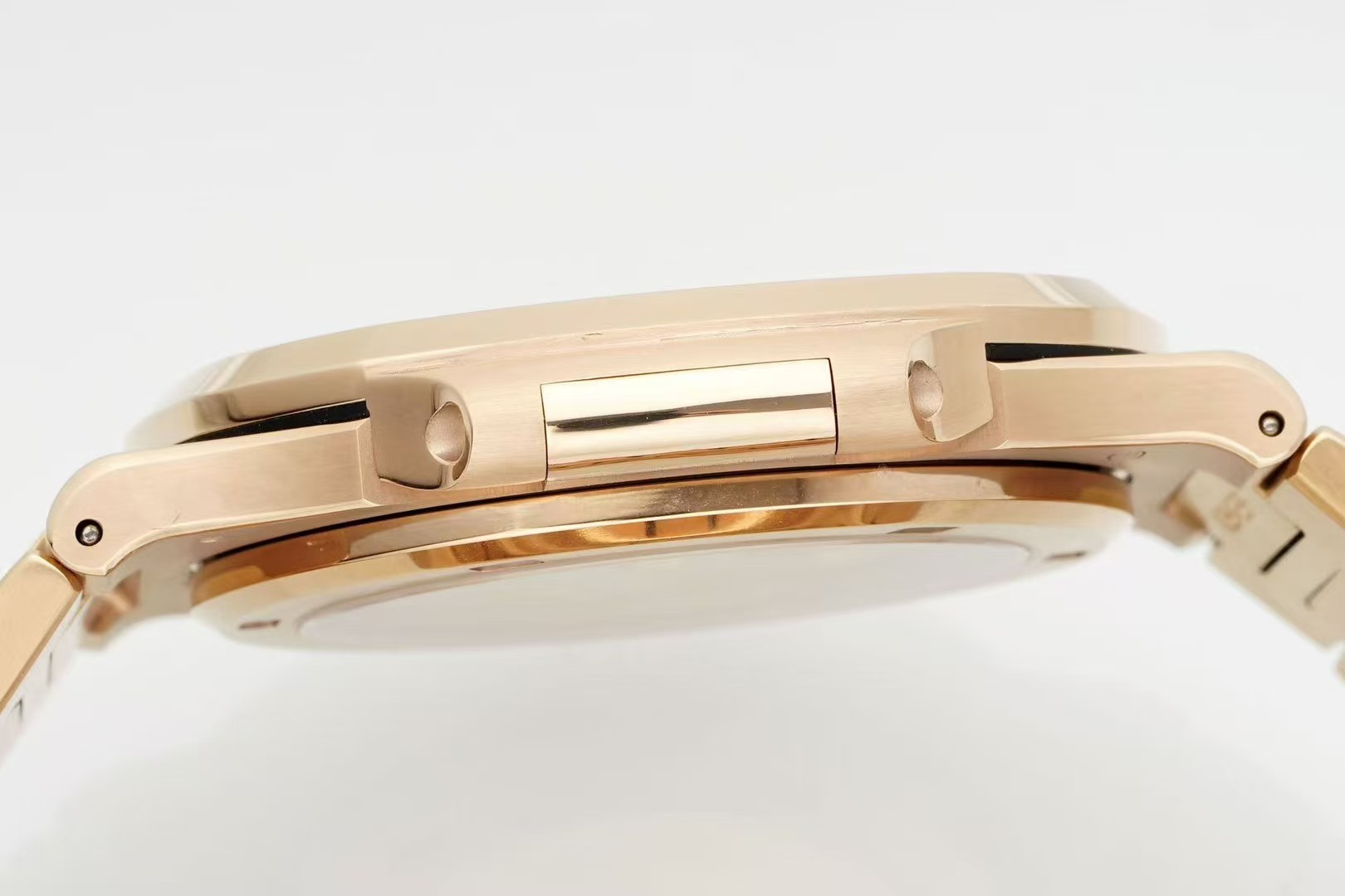 Attention to detail is further exemplified in the watch’s casing. The DDF replica boasts precise aligning of the case lugs and elegant curvature at each of the four corners, mimicking the original Patek Philippe Nautilus with remarkable accuracy. This dedication to precision craftsmanship is critical in achieving a product that holds its own in the broader market of luxury replicas.