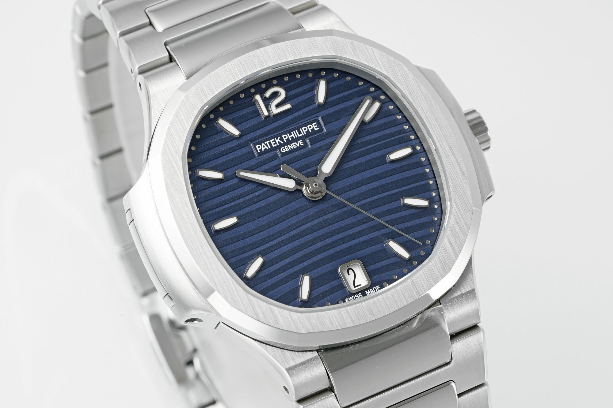 The DDF Nautilus 7118 replica captures attention with its expertly crafted silver-white dial, featuring a subtle wave pattern that reflects light in an alluring dance of elegance. This attention to detail in replicating the silver brushed wave pattern mirrors what Patek Philippe does best, creating a dial that maintains the exquisite glow of the original. The dial’s indices are chamfered precisely to match the original size, meeting the stringent standards expected by aficionados.