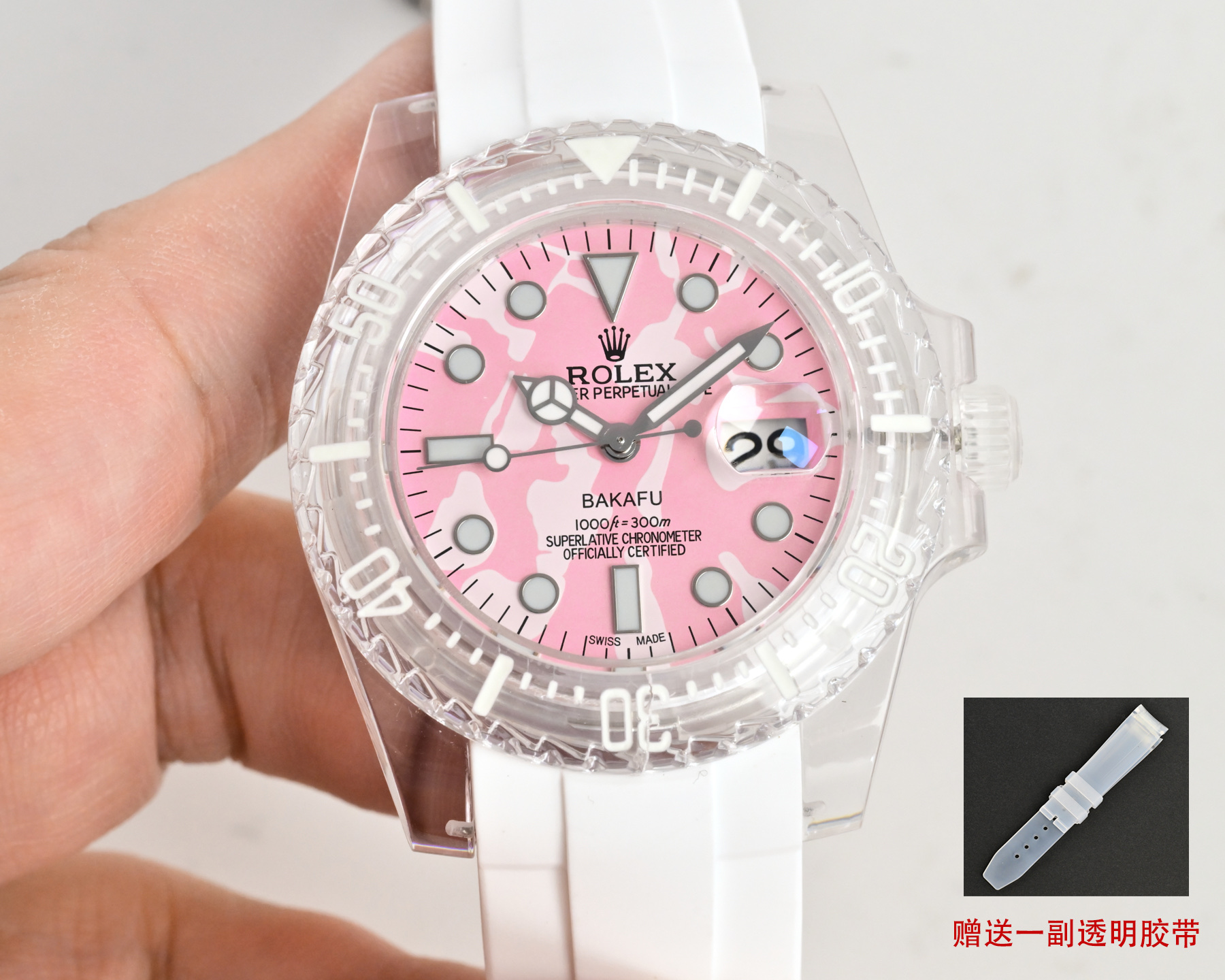 The watch is accompanied by a premium imported TPE fluororubber strap, known for its resistance to yellowing, echoing the watch’s case characteristics. This thoughtful addition enhances the tactile experience, creating a seamless blend of luxury and comfort. The strap’s similarity to the original, alongside a precision-milled buckle, speaks to the collaboration’s commitment to quality craftsmanship. As a bonus, each purchase includes an additional semi-transparent strap, catering to those who relish personalization.