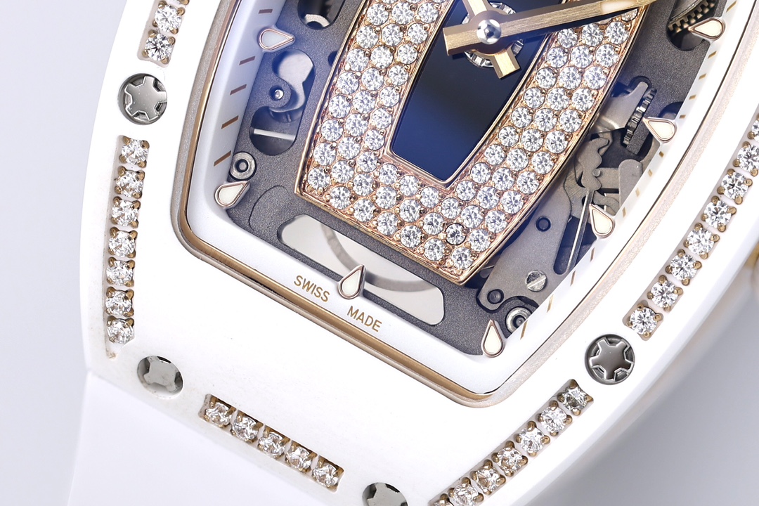 In conclusion, the Richard Mille RM07-1 Black and White Ceramic with Diamond Inlay is more than a luxury accessory; it represents a convergence of art, engineering, and ethical considerations. For enthusiasts, it’s a symbol of refined taste, and for the industry, it sets a benchmark in watchmaking excellence—whether as a genuine marvel or in the world of replica watches, where the essence of such craftsmanship seeks to be emulated.