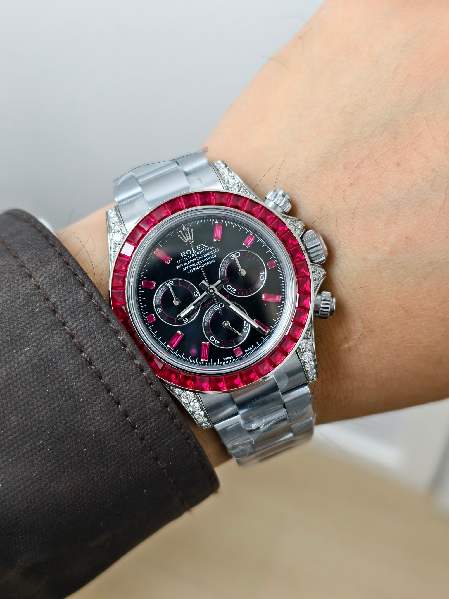 In conclusion, the CBD Daytona with its ruby bezel and Dandong movement is a fascinating case study in the dynamics of replica timepieces. It showcases how replicas are evolving beyond mere facsimile, into objects of beauty in their own right. For the discerning watch enthusiast, this marks an opportunity to engage with horological art in a way that challenges traditional boundaries, inviting a reevaluation of both value and values in the world of watches.