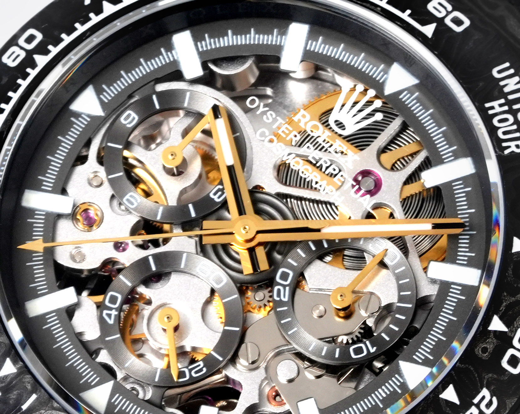 Crafted from high-composite carbon fiber, the TW Factory Daytona replica is a testament to modern material science and design prowess. The case measures 40mm in diameter and 12.4mm in thickness, mirroring the dimensions of its luxury counterpart, yet what truly sets it apart is the unique carbon fiber pattern. Each piece is bestowed with a singular aesthetic, ensuring no two watches are identical. This bespoke approach not only democratizes luxury but also introduces a new level of personal expression into the world of watchmaking, often bounded by uniformity.