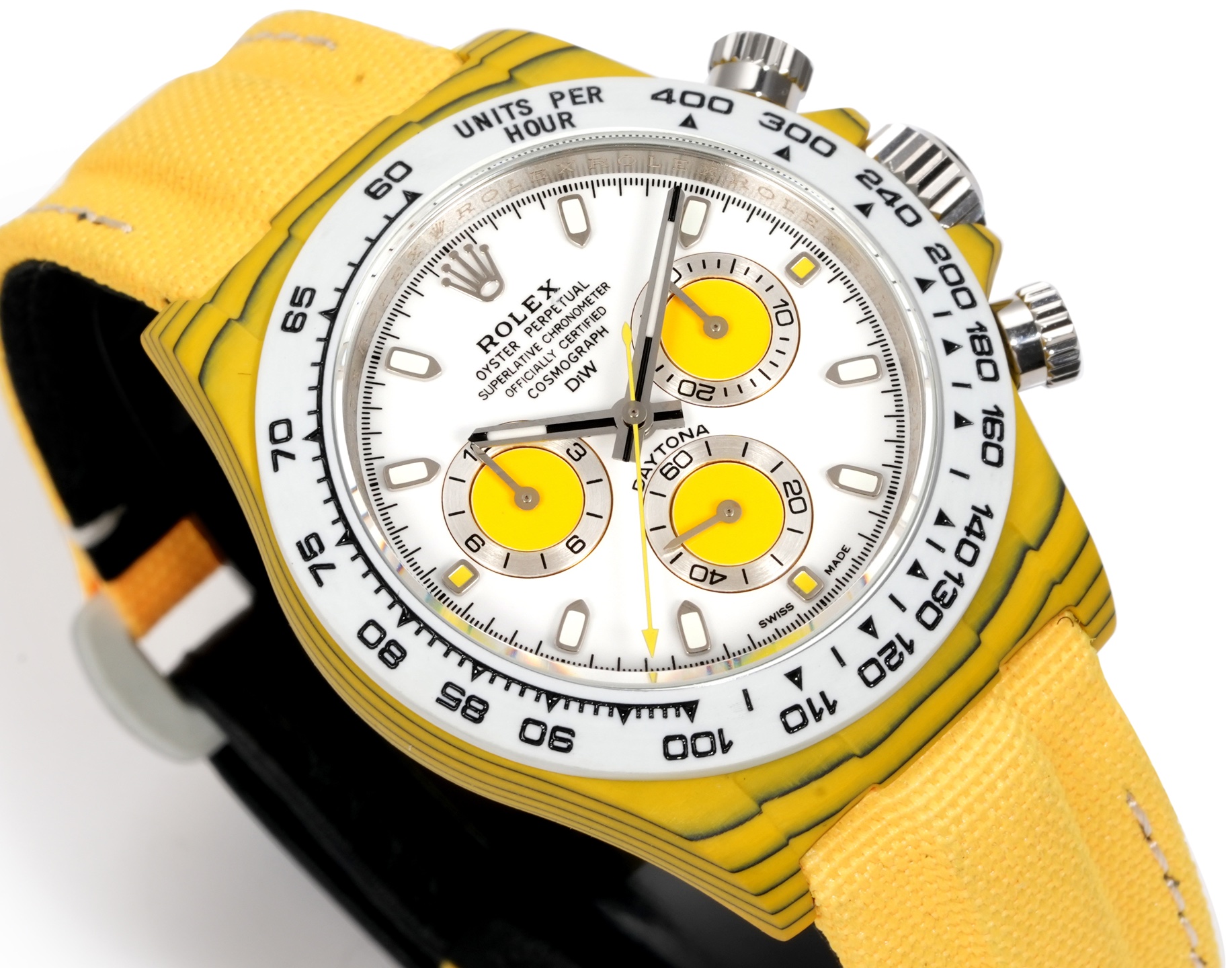 The aesthetic brilliance of the TW Factory’s approach is evident in the painstaking attention to detail. Each piece undergoes hand polishing and angling, reflecting a commitment to artisanal craftsmanship that is often associated with high-end bespoke services. The use of carbon fiber, traditionally associated with high-performance engineering and motorsport, aligns the Daytona with an image of dynamic energy and resilience.