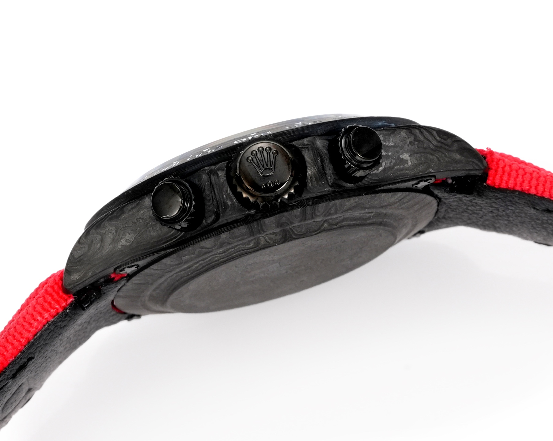 Carbon fiber’s allure in the watchmaking industry stems from its blend of lightweight wearability and robust durability. In the case of the TW Factory Daytona, every piece bears a singular carbon fiber pattern, ensuring that no two watches are exactly alike. The 40mm diameter and 12.4mm thickness remain true to the original Daytona proportions, paying homage to Rolex’s celebrated design ethos while introducing a modern twist.