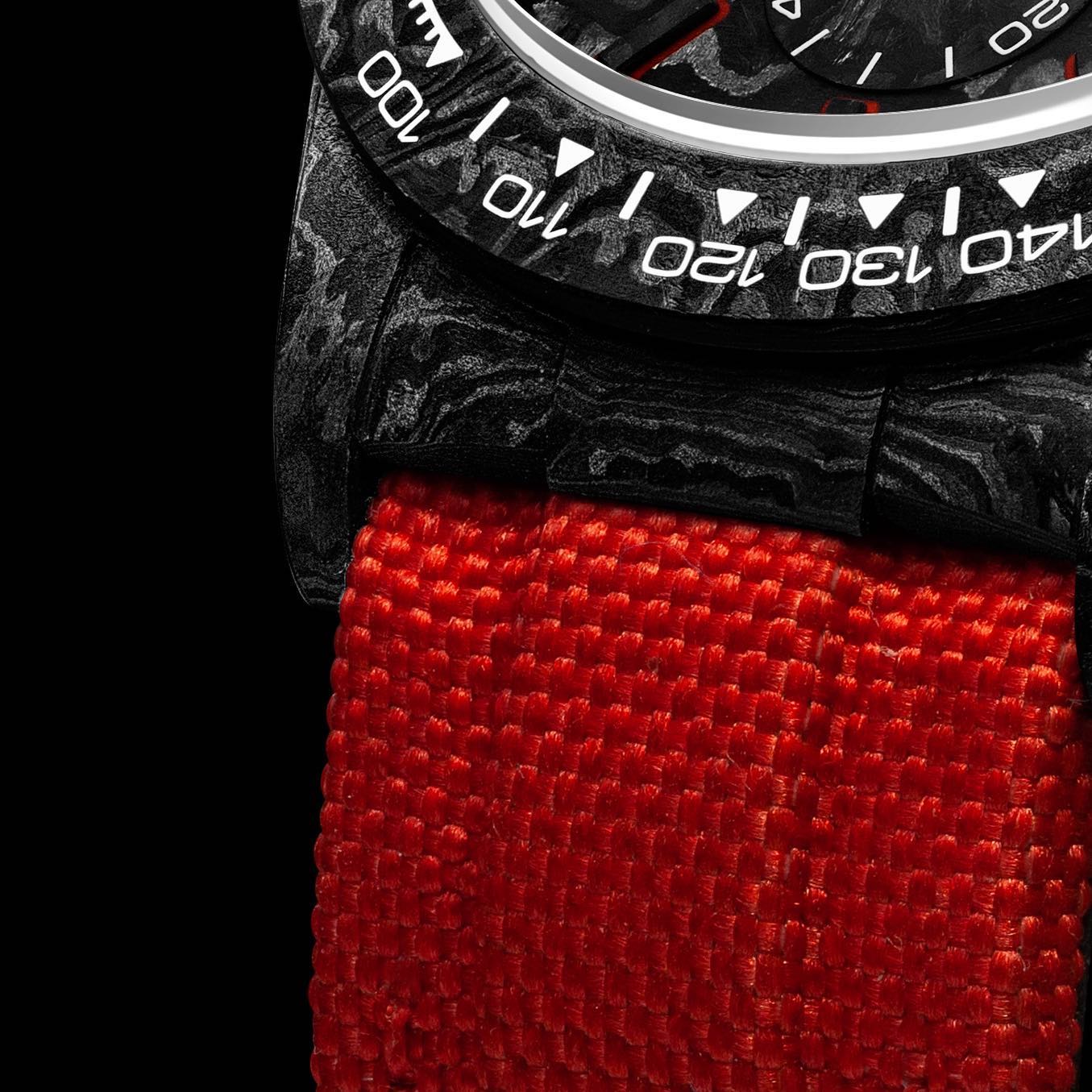 The carbon fiber not only contributes to a reduced weight, making the watch surprisingly light on the wrist, but also offers exceptional strength and resistance to scratches and elements. Each watch showcases a one-of-a-kind carbon fiber pattern, ensuring that no two pieces are identical—enhancing its exclusivity in a market where individuality often commands a premium.