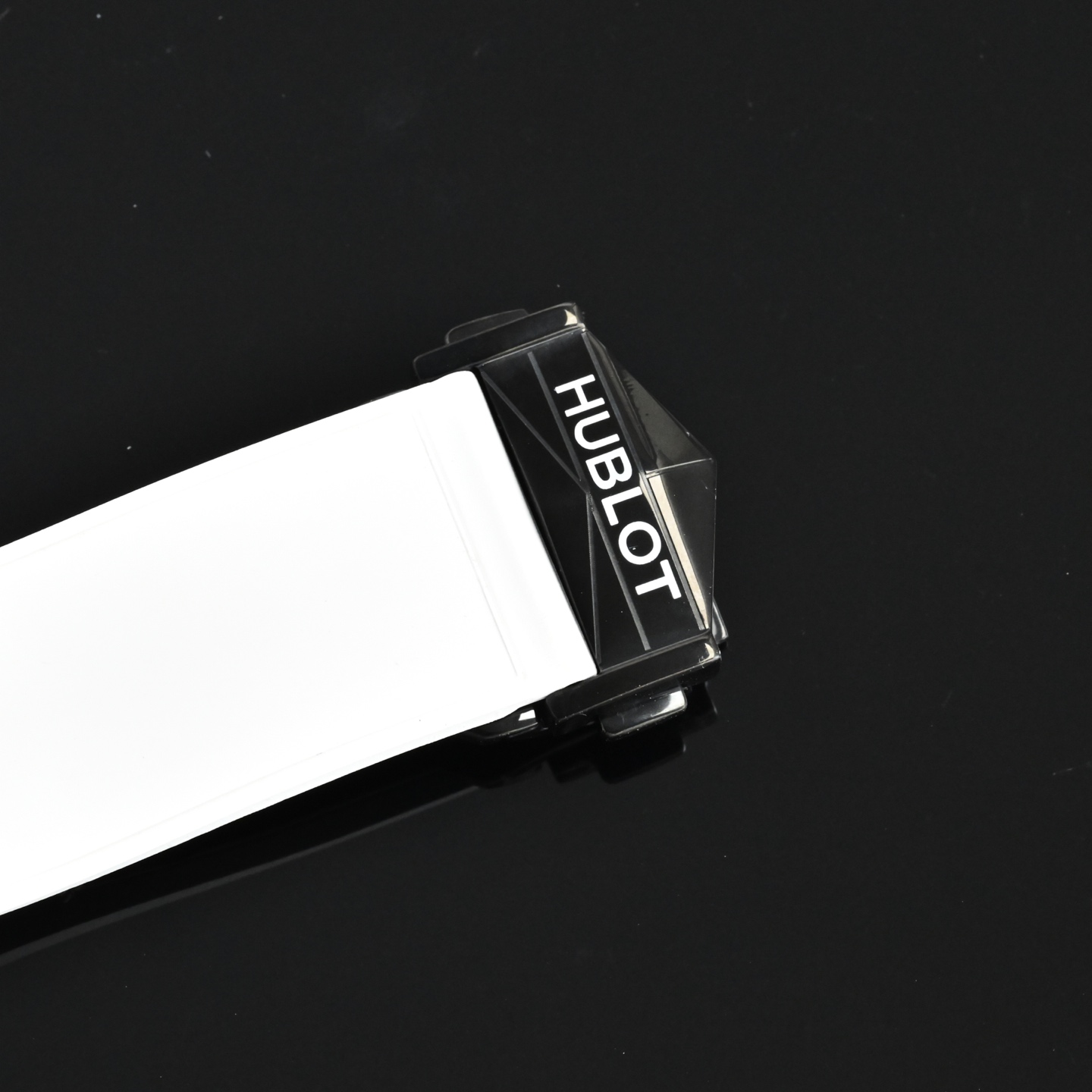 Visual dynamism is central to the Big Bang Sang Bleu II, particularly evident in the hour and minute hands. These are designed as diamond shapes, with two hexagonal sub-dials that contribute to an ever-changing geometric display as time progresses. This intricate dance of shapes on the dial not only attracts the eye but also embodies Hublot’s brand message—making the invisible visible through innovative design.