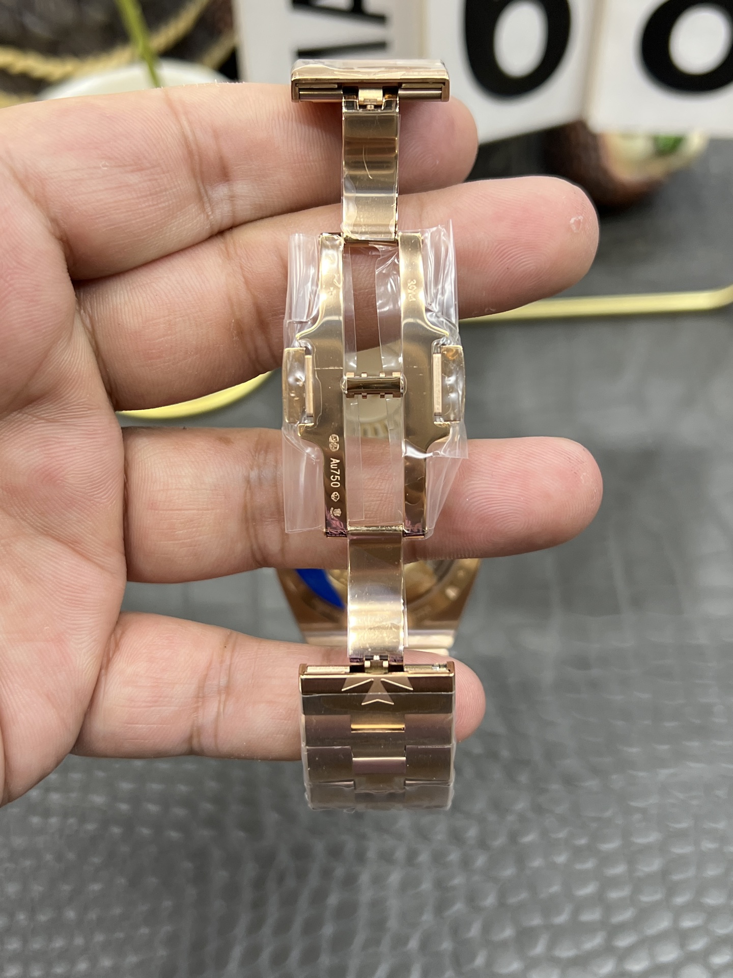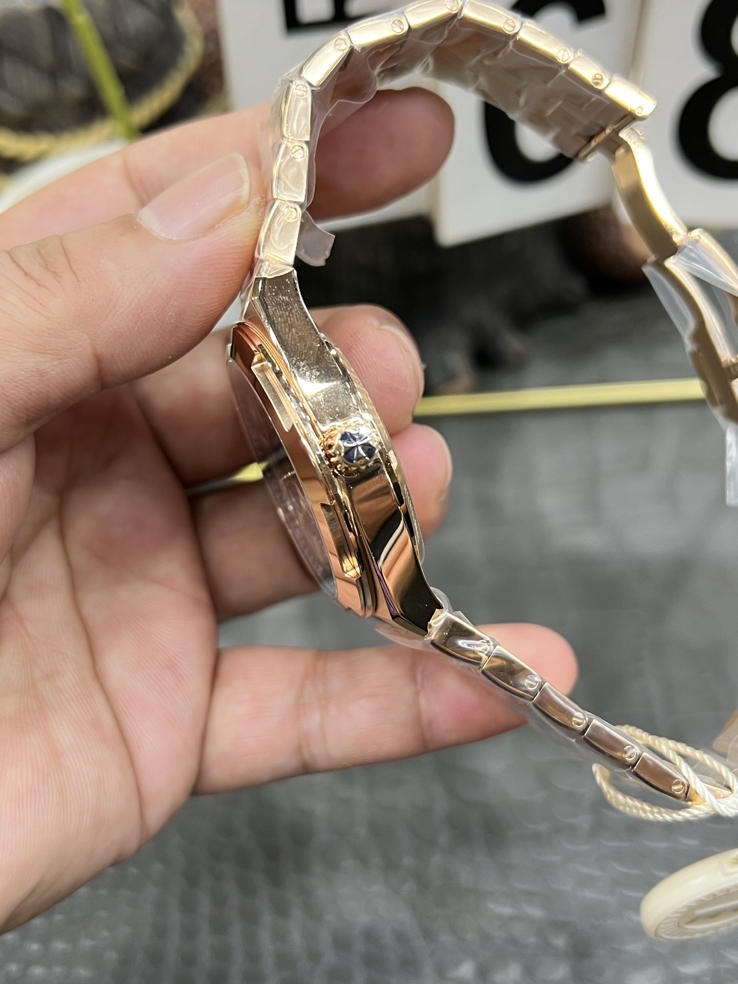 With its 41mm case, the Overseas V4500 in rose gold exhibits a design that pays homage to Vacheron Constantin’s illustrious past while embracing modernity. The sophisticated simplicity of the watch’s design offers an elegance that is both timeless and contemporary. The meticulous craftsmanship ensures that every detail, from the polished bezel to the intricate dial pattern, aligns with the brand’s high standards. Inside, the Caliber 5100 movement ensures precision, embodying decades of horological expertise. Although replicas often lack the original’s movement intricacies, this piece attempts to capture the spirit and reliability inherent in the original.