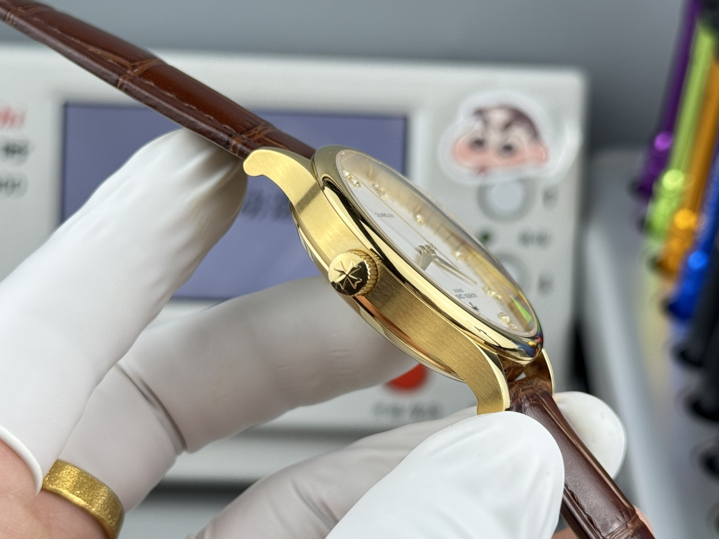 The Vacheron Constantin Traditionnelle stands out with its understated elegance, a sentiment echoed through its classic design language. The watch features a 40mm case crafted from high-quality 316L stainless steel, providing robust durability while maintaining a lightweight feel on the wrist. Nestled within the case is a sapphire crystal glass, offering not just a clear and scratch-resistant view but also adding to the model’s luxe appeal. The choice of materials and meticulous attention to detail signify the brand’s commitment to quality.