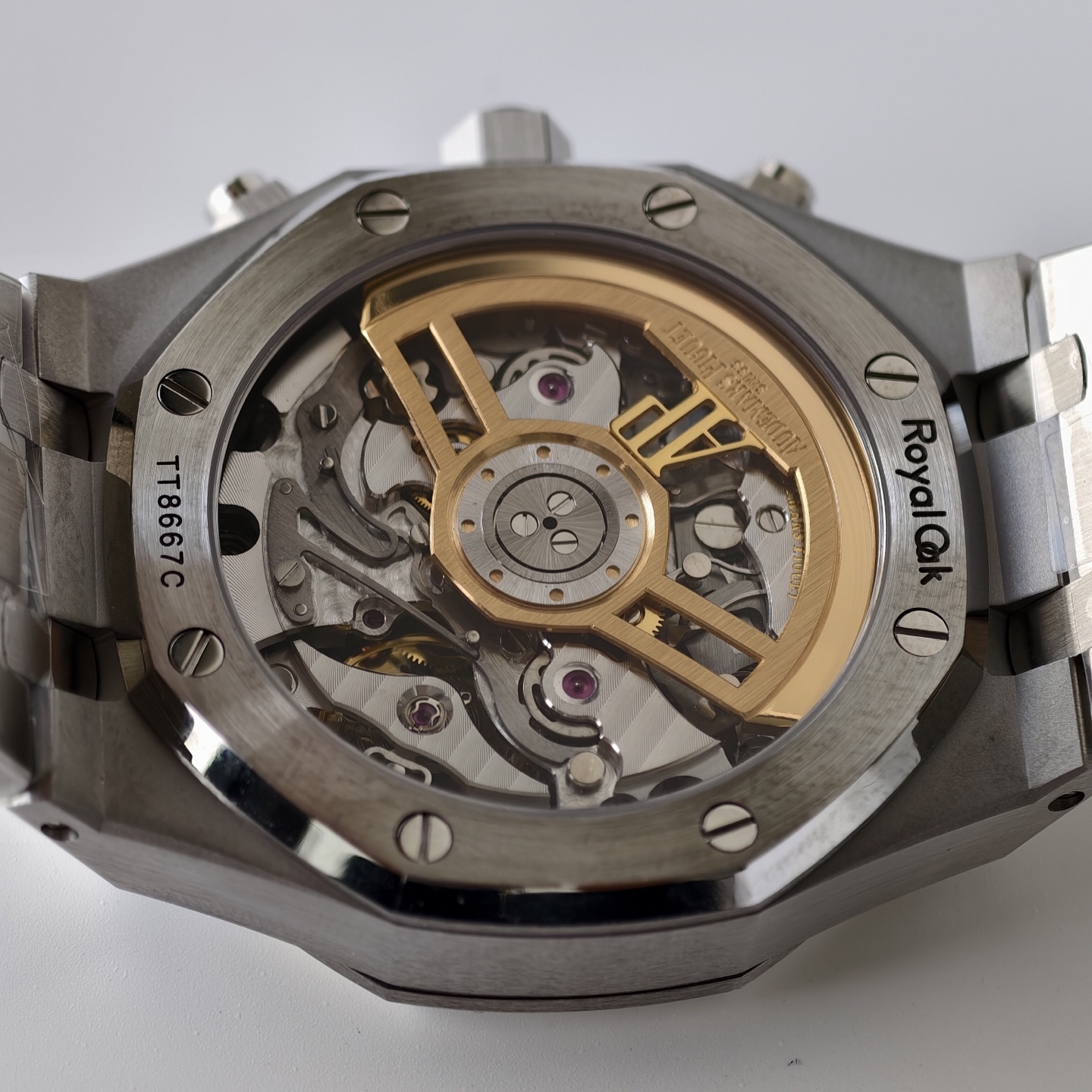 Continuing the unified design ethos, the integrated stainless steel bracelet is both robust and elegantly crafted. Its polished, beveled edges and articulated links offer a seamless fit to the wrist. The AP branded deployant clasp operates with smooth precision, further aligning the replica’s tactile experience with that of the original. Moreover, the built-in micro-adjustment mechanism allows for millimeter-perfect fitting, echoing the innovative spirit that underpins the Royal Oak legacy.
