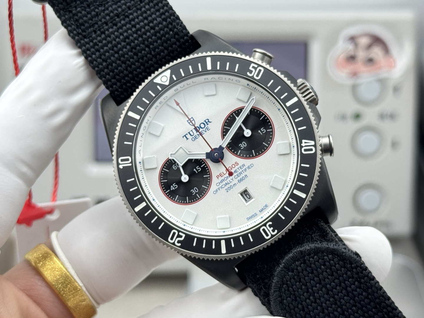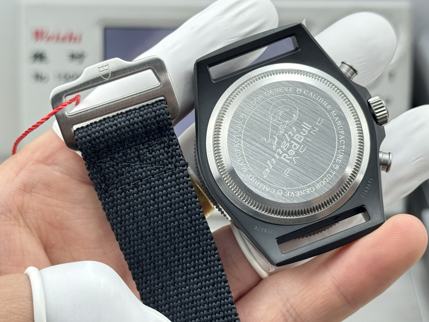 The 60-minute graduated titanium bezel, featuring a 120-click bi-directional rotation, exemplifies the watch’s utility and luxury. The screw-down titanium crown, adorned with Tudor’s embossed shield, aligns with the brand’s identity while enhancing waterproof integrity. The Alinghi Red Bull Racing emblem engraved on the case back serves as a testament to the collaborative ethos of this model. Such co-branding can elevate a watch’s prestige through association with high-performance sports, yet it also poses a risk: over-reliance on partner prestige can dilute Tudor’s unique brand narrative if not carefully balanced.