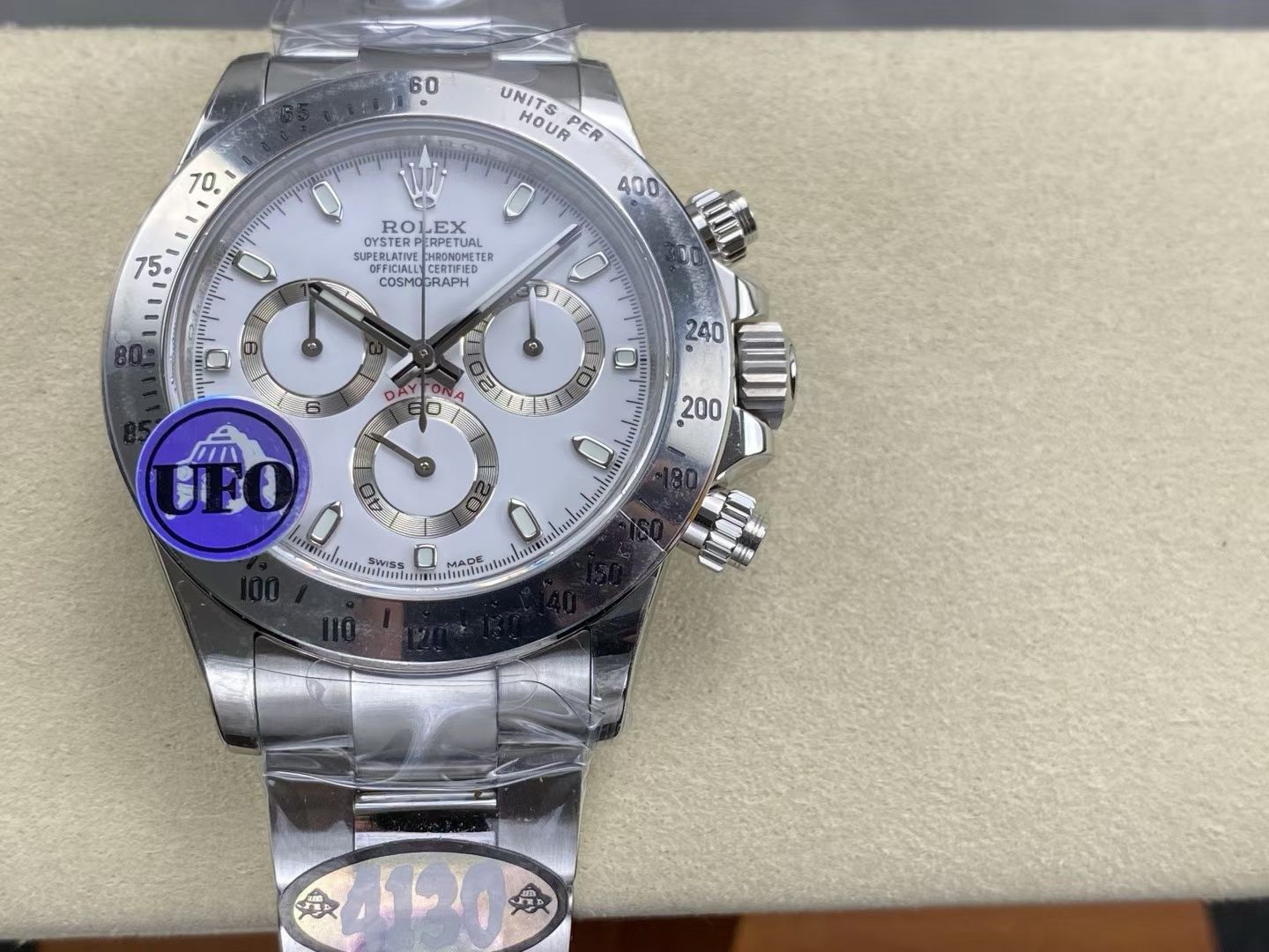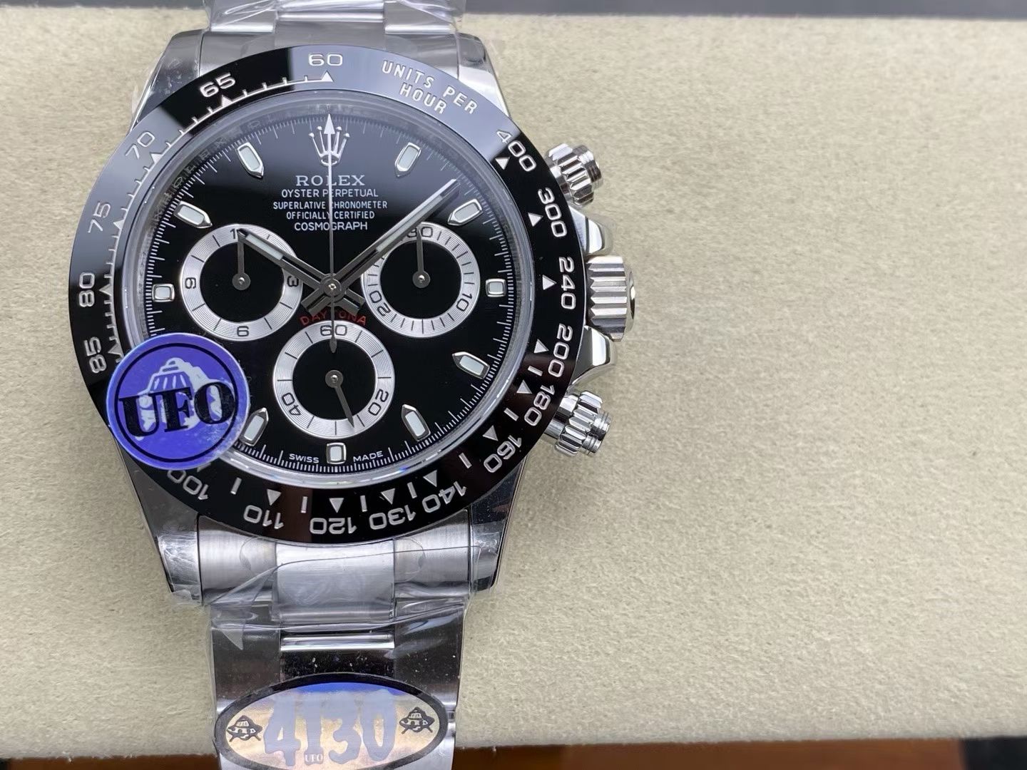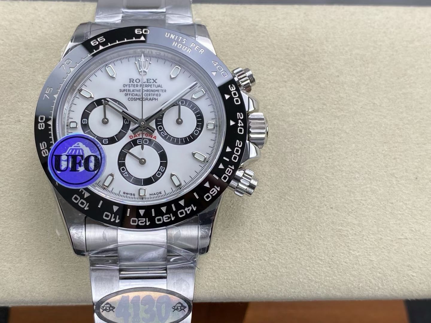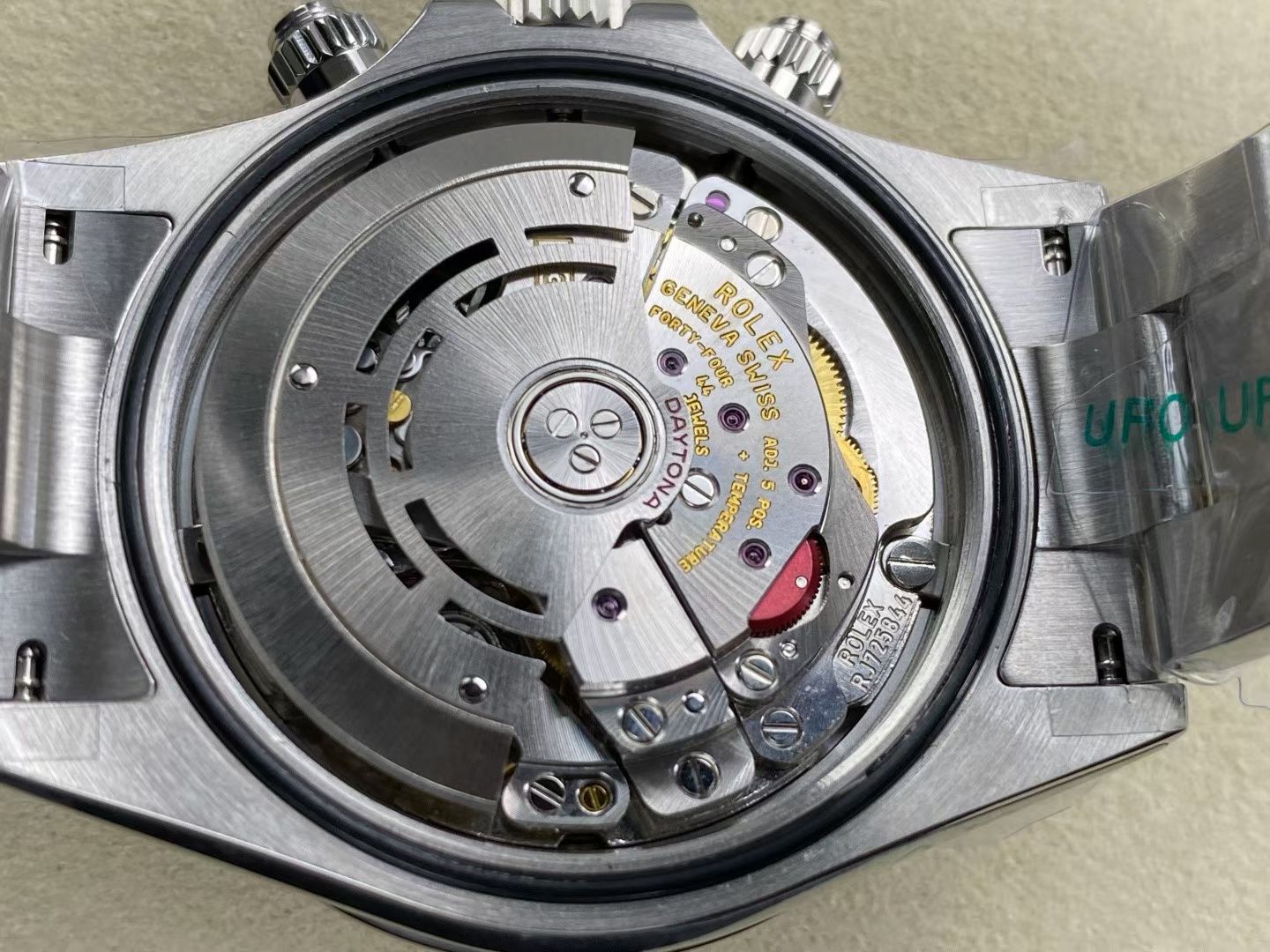 At the heart of UFO Factory’s latest offering is the SH-TW4130 movement, notable for its no-play balance wheel and innovative counterweight system. This iteration mimics the functionality of the Rolex Daytona’s 4130 caliber, hailed for its precision and reliability. By replicating such a complex movement, UFO Factory is not merely imitating but pushing the boundaries of what is achievable in the replica sector.