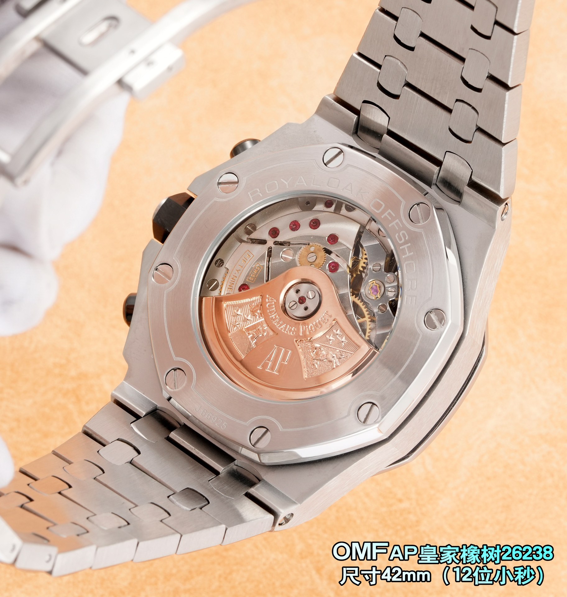The Audemars Piguet Royal Oak Offshore 26238 is a resounding testament to the brand’s dedication to pushing the boundaries of horological design and engineering. This model, renowned for its 42mm case—a popular and contemporary size—strikes an impressive balance between boldness and sophistication. The Mega Tapisserie pattern on the dial pays homage to the brand’s iconic design language, capturing the essence of Audemars Piguet’s creativity and heritage. But what does this model offer beyond its face value, and how does it fit within the broader context of the luxury watch market?