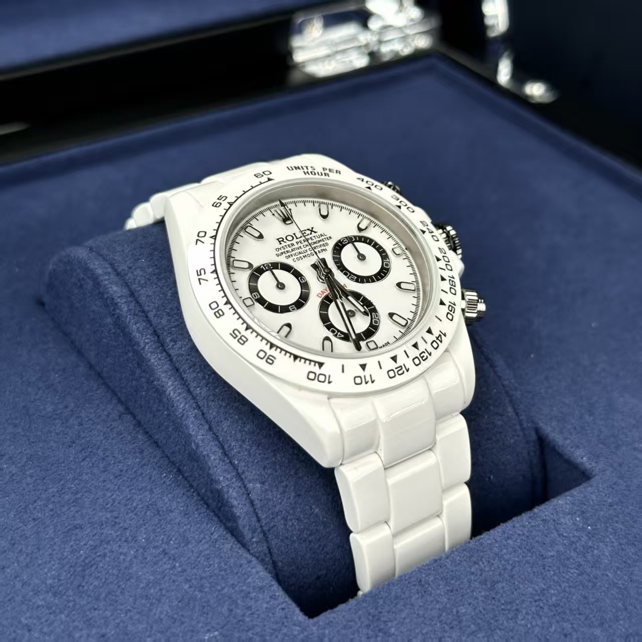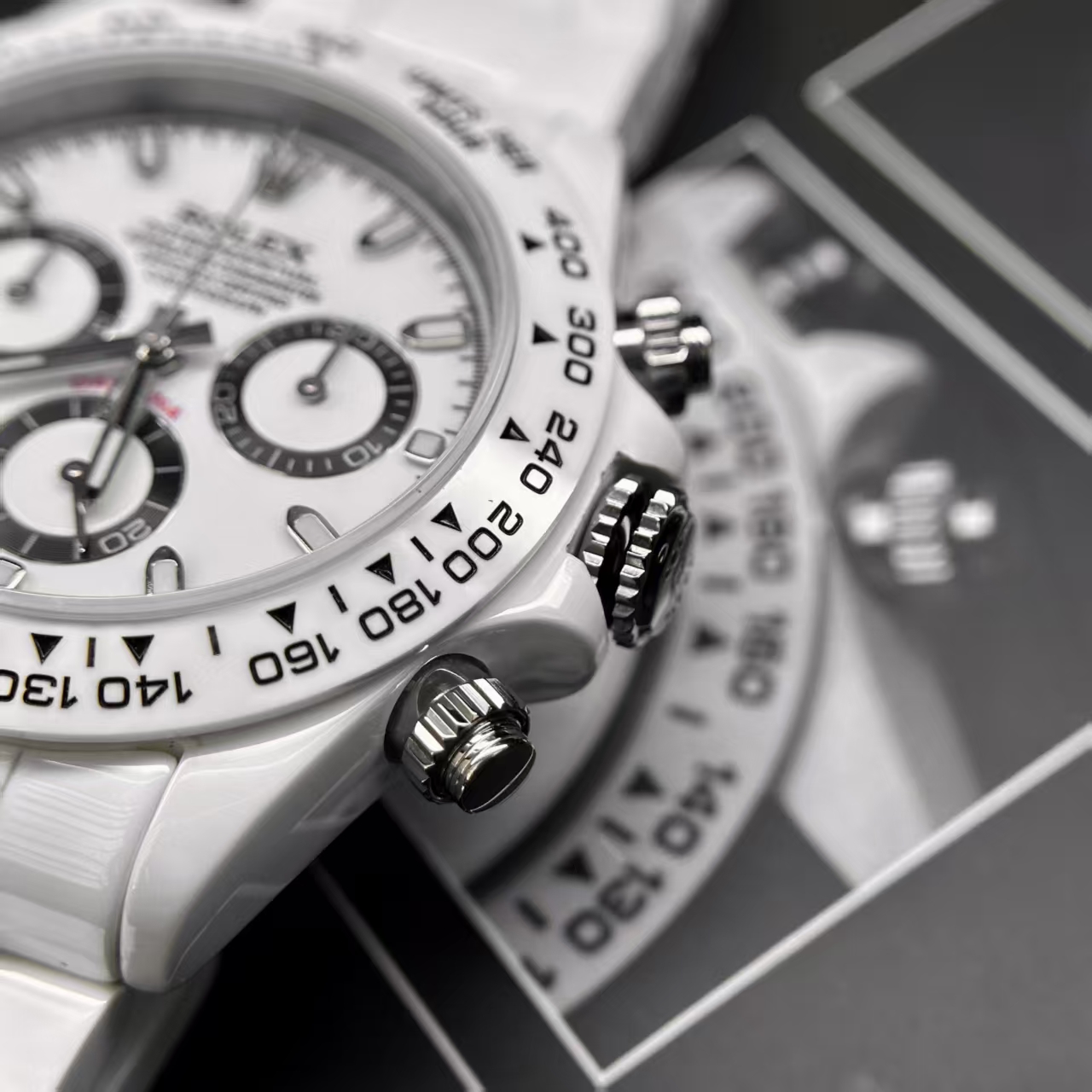 Color plays a pivotal role in preserving the Daytona’s iconic status. The AET modification faithfully replicates the authentic palette of the original Daytona face, ensuring that the vibrant aesthetic Rolex enthusiasts expect is flawlessly maintained. Meanwhile, the watch’s ceramic case and band are crafted from genuine zirconia. This material choice underscores TW Factory’s commitment to durability, offering high hardness and superior scratch resistance, which are essential for a watch that is both a daily companion and a collector’s piece. In an era where materials science is rapidly advancing, this choice positions the AET Daytona Ceramic Mod not just as a novelty, but as a durable piece of precision engineering.
