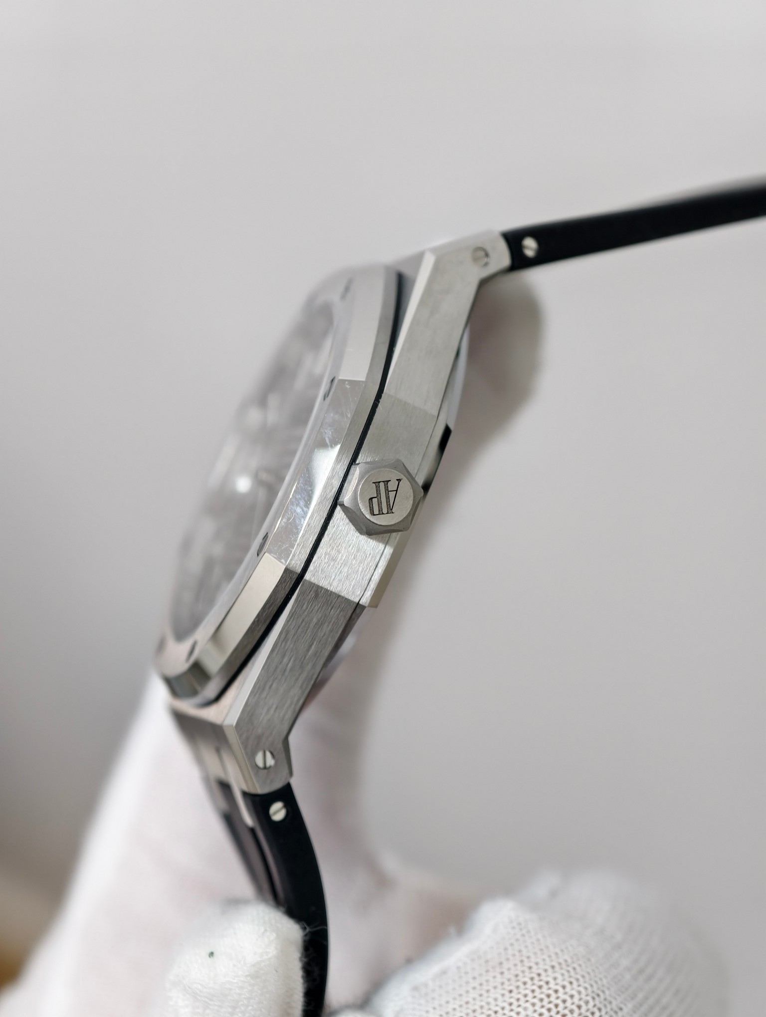 The visual appeal of the Royal Oak 15510 lies in its slate-grey dial adorned with a radiant sunburst pattern, a design choice that evokes elegance and richness. This detailing mirrors Audemars Piguet’s commitment to craftsmanship while delivering a modern twist. The textured face captures the essence of luxury, drawing light in diverse ways at differing angles. Such artistry in dial design positions this replica as more than just a copy—it’s a testament to the skill involved in high-quality imitation.