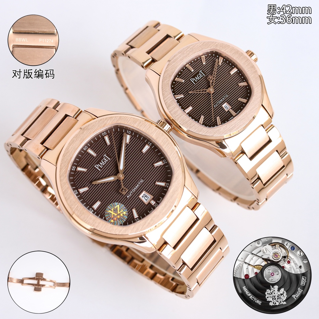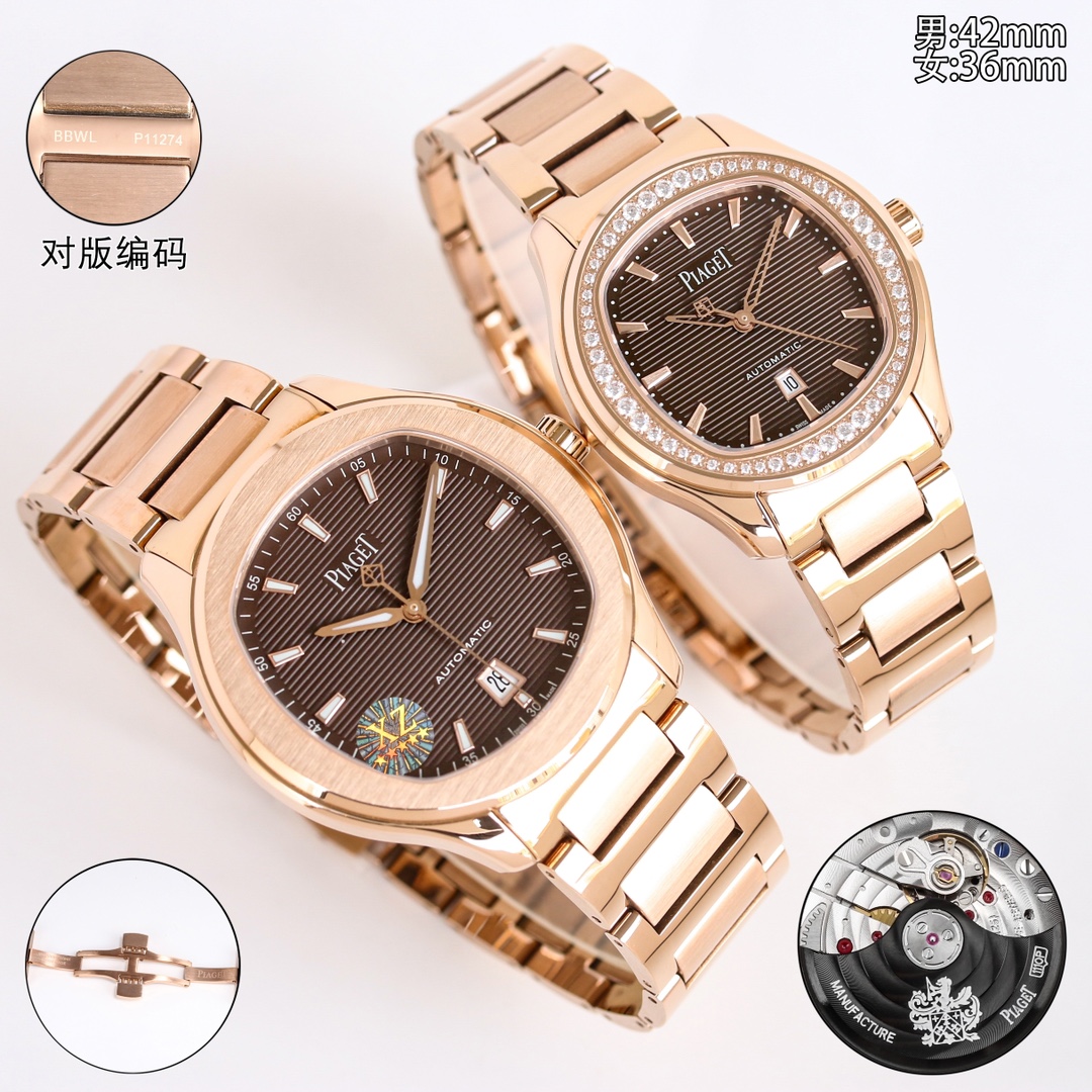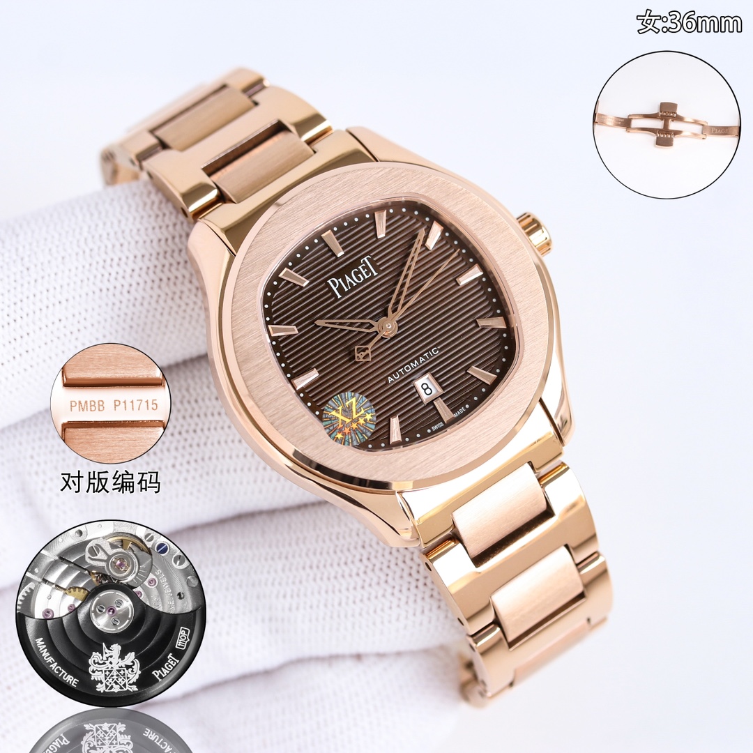 Both the men’s (42×9.3mm) and women’s (36×9.1mm) models mirror the sleek dimensions of their genuine counterparts, ensuring that the Piaget Polo Series remains true to its intended profile. The double-sided anti-reflective sapphire crystal enhances legibility and adds an additional layer of luxury, further elevating the watch’s appeal.