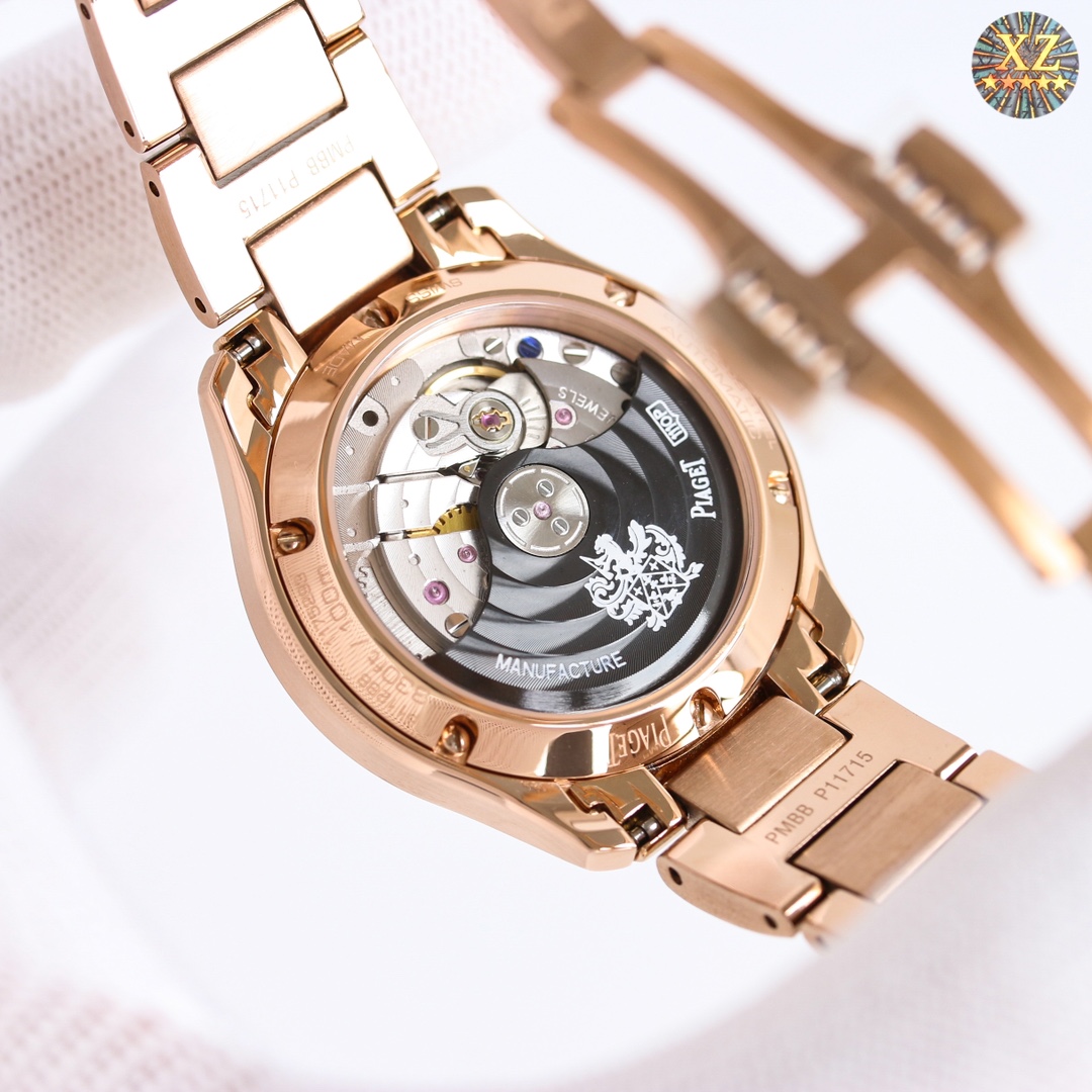 At the core of the Piaget Polo Series lies a customized 9015 movement, refined into the 1110P automatic winding mechanism, offering a robust 50-hour power reserve. This meticulous engineering underpins not only the watch’s precision but also its reliability. In an industry where mechanical prowess is often celebrated, the Piaget Polo Series ensures that its technical refinement matches its aesthetic appeal. Such a feature places it in direct competition with its high-end counterparts, affirming its place both within Piaget’s portfolio and the broader luxury watch market.