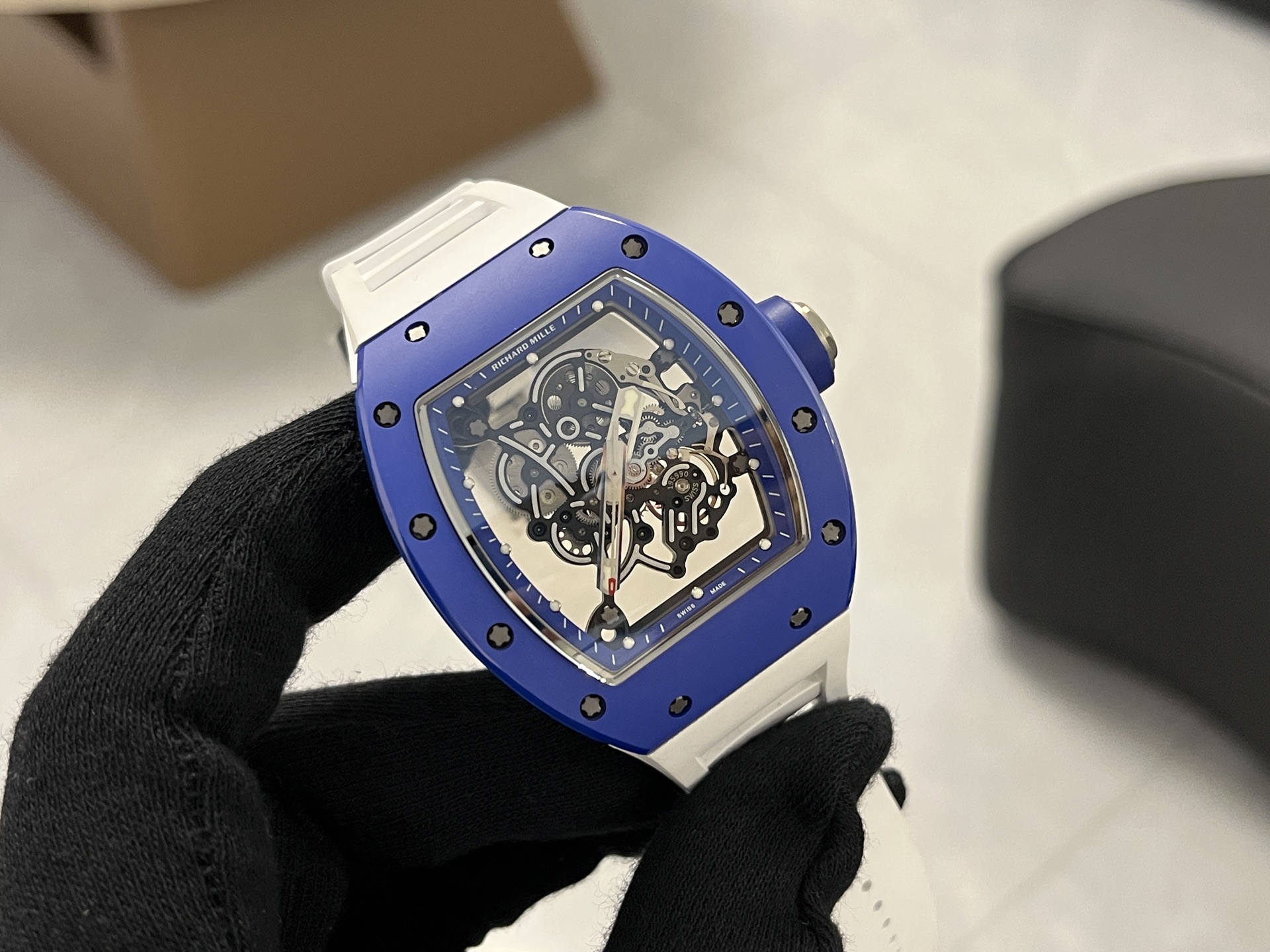 In conclusion, the Richard Mille RM055 is a celebration of the brand’s pioneering spirit. It is a timepiece that blends tradition with innovation, offering not only style and precision but also a thoughtful reflection on the future of luxury watches.