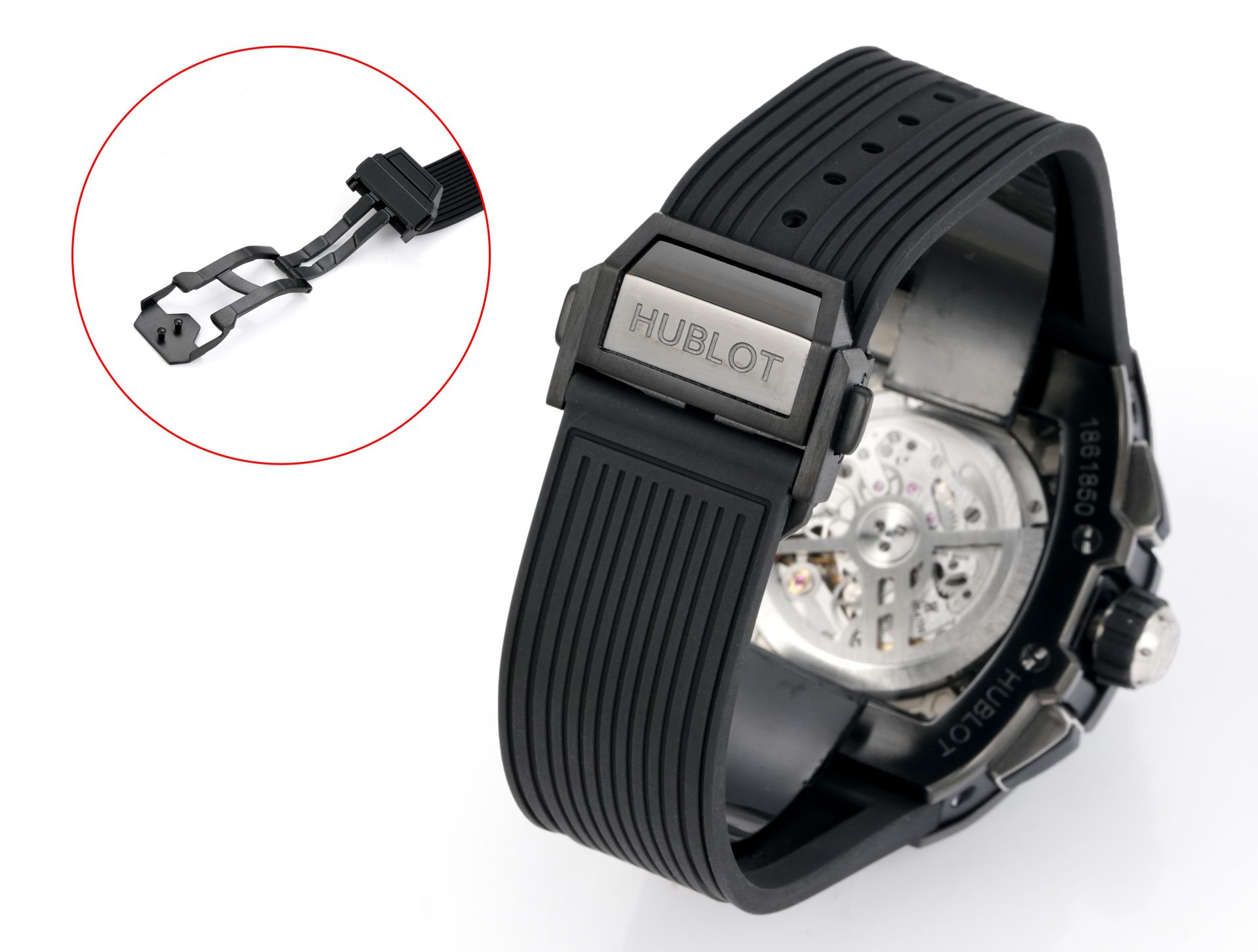 Taking into account the necessity of flexibility in a fast-paced world, Hublot introduces a convenient ‘one-click’ strap change system. This feature allows wearers to seamlessly swap out the customized fluorine rubber strap with a simple press of a button. This innovation underscores Hublot’s commitment to blending luxury with practicality, ensuring the watch can effortlessly accompany its owner from boardroom meetings to weekend adventures.