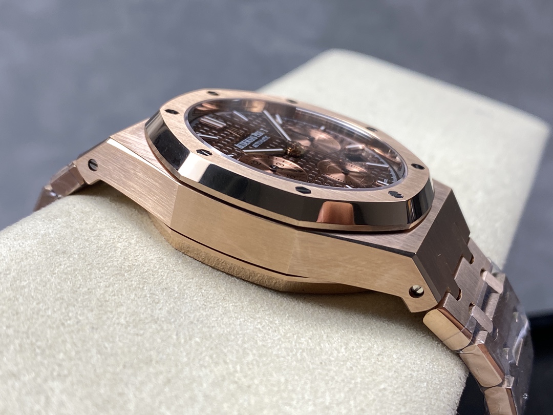 A harmonious blend of precision and aesthetics, the 26331 features an open-back design, echoing the elegance of its sibling, the 26240 anniversary edition. Both watches take the classic charm of the 7750 chronograph movement and enhance it with the practical placement of a small seconds at the 6 o’clock position.